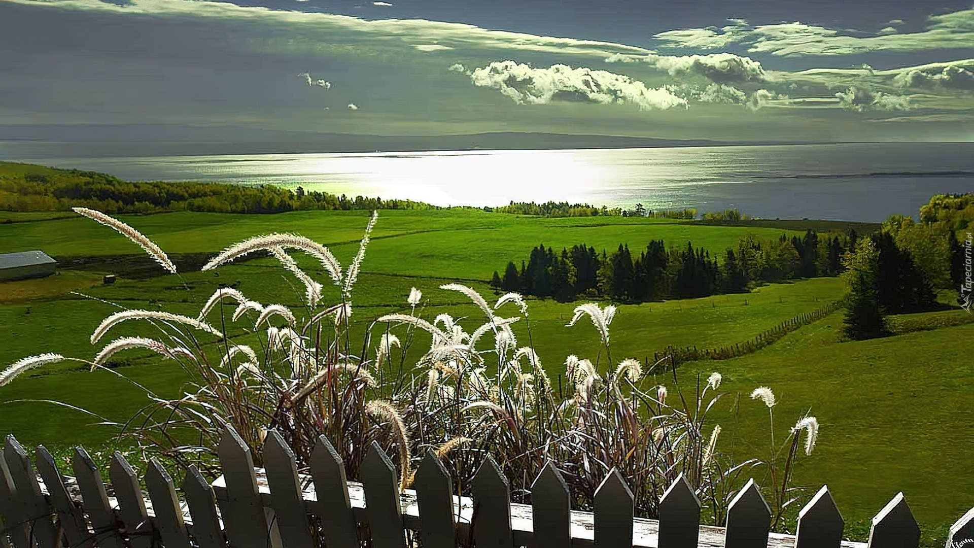 Edytor tapety: Łąki, Jezioro, Płotek