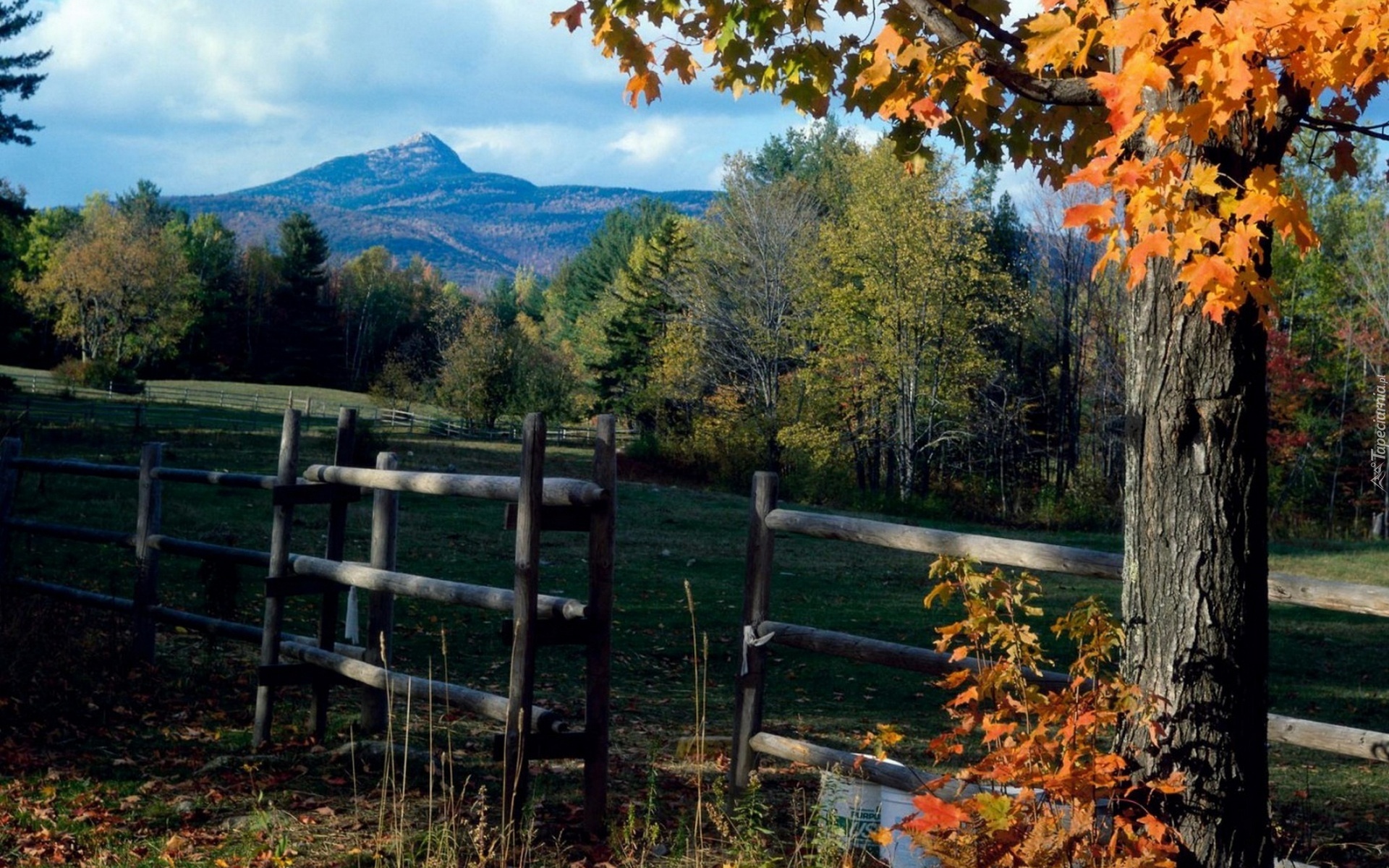 Edytor tapety: Zagroda, Drzewa, Góry