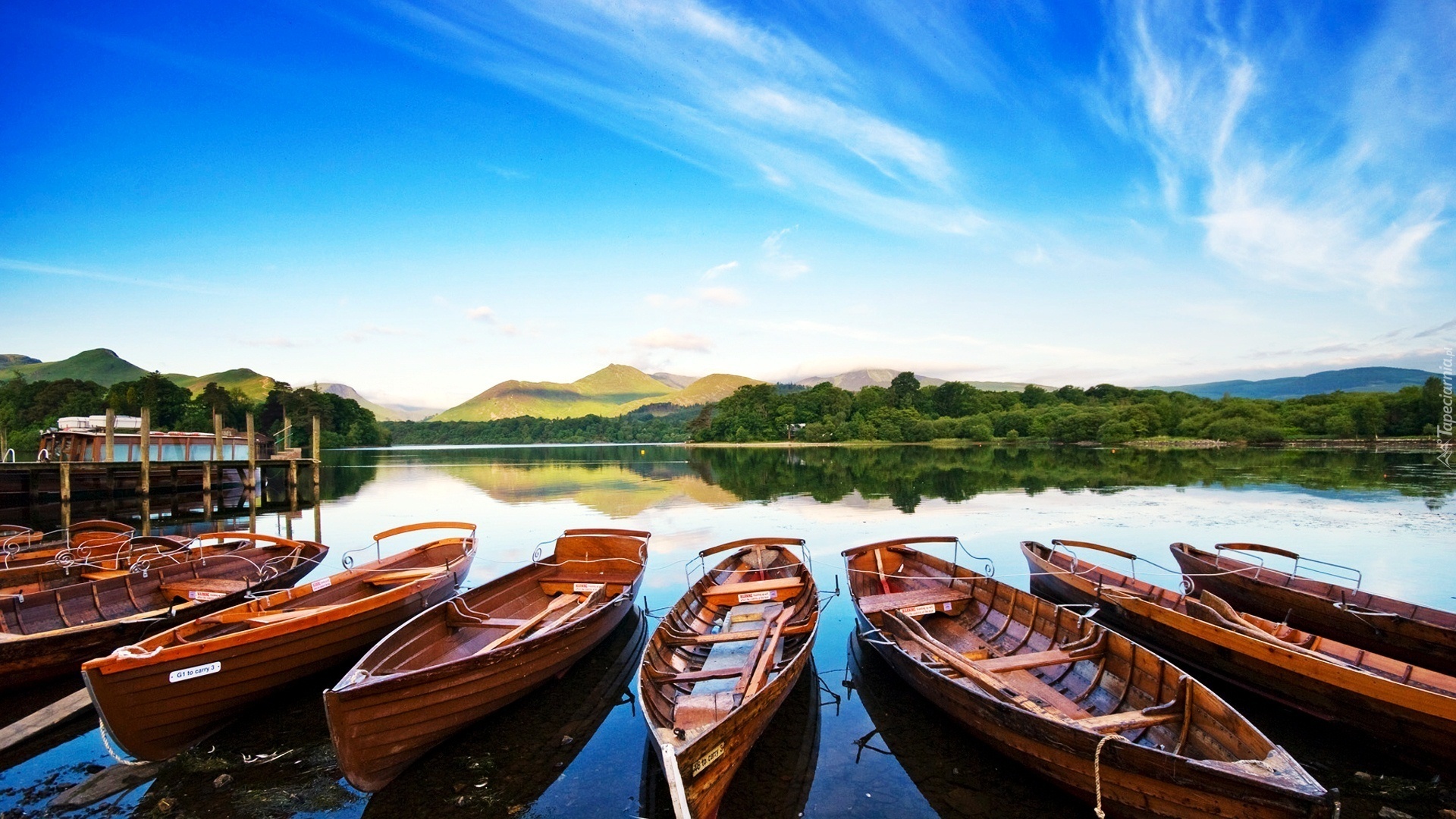 Edytor tapety: Przystań, Łódki, Góry, Błękitne, Niebo
