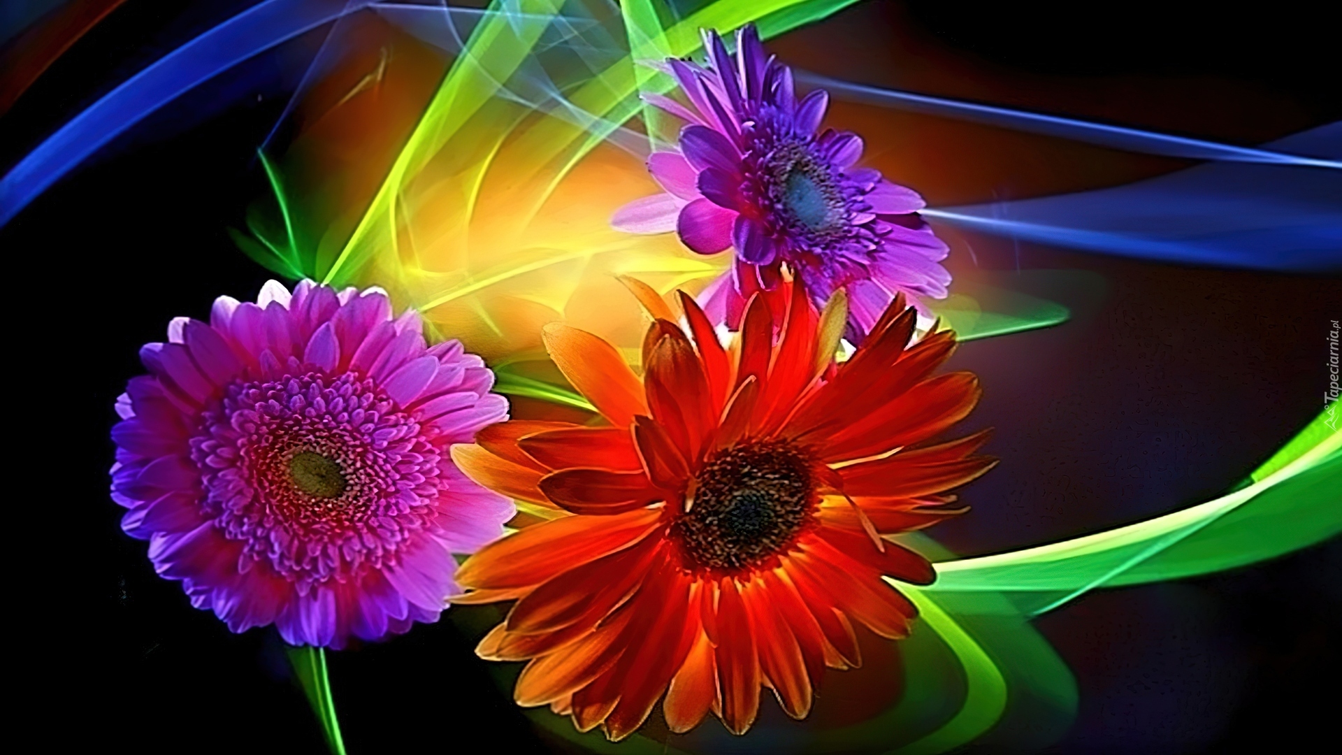 Edytor tapety: Kwiaty, Gerbera, Refleksy, Świała
