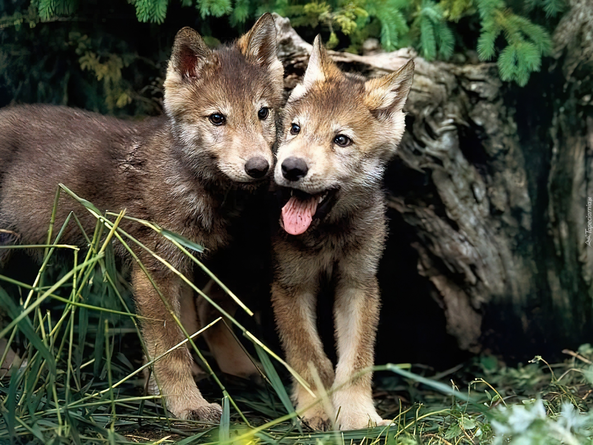 Edytor tapety: Wilki, Szczeniaki, Drzewo