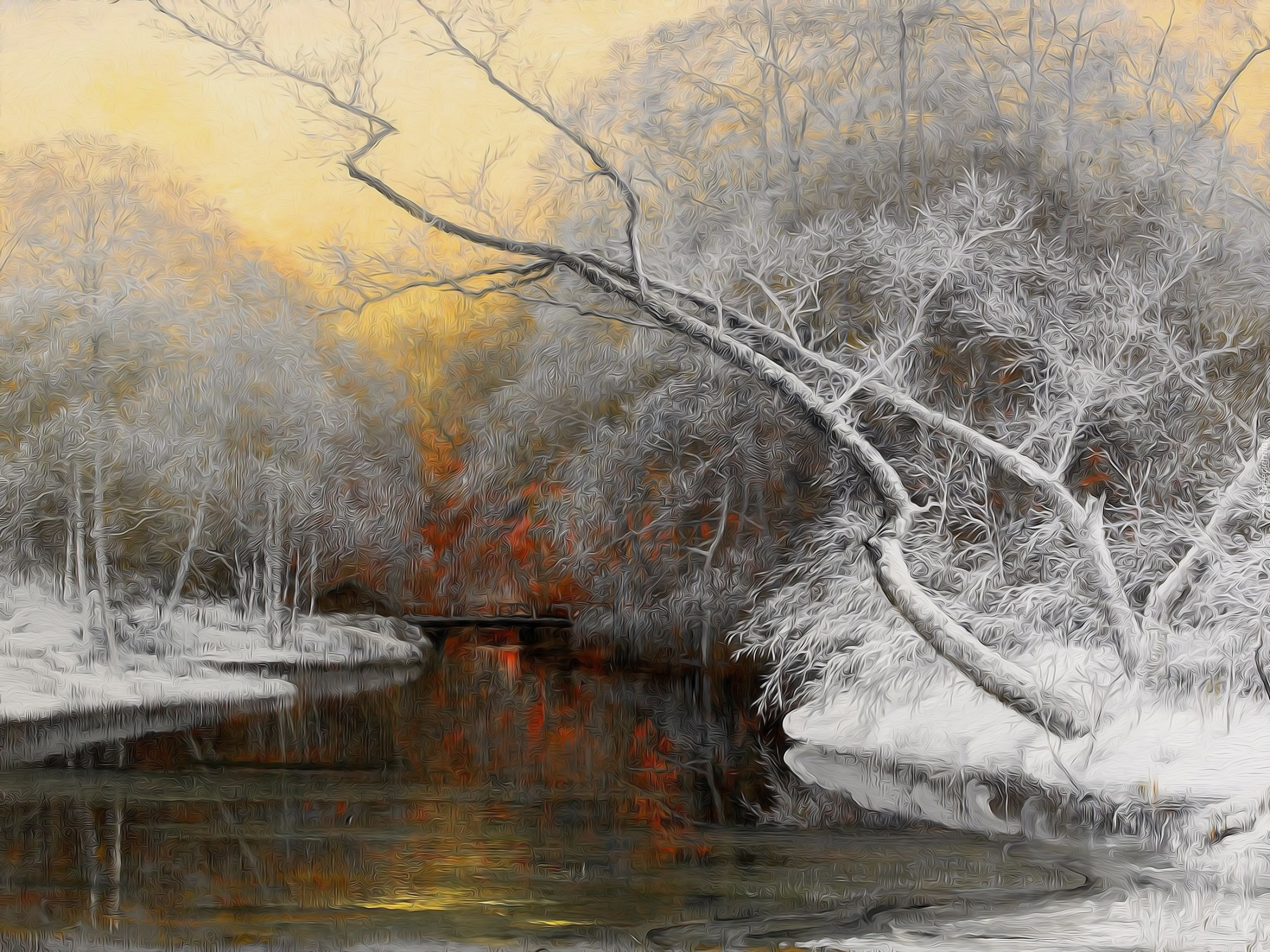 Edytor tapety: Zima, Rzeka, Drzewa, Obraz