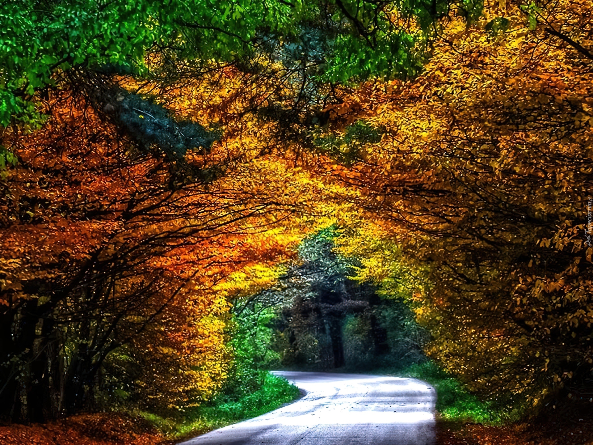 Edytor tapety: Las, Jesień, Droga