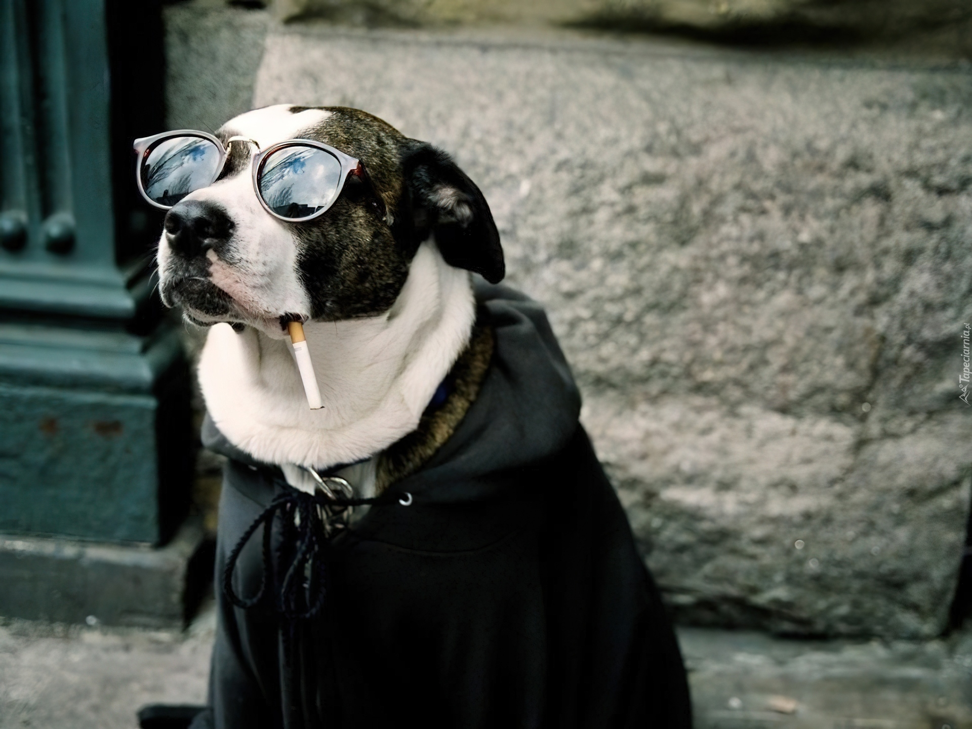 Edytor tapety: Pies, Okulary, Papieros, Peleryna