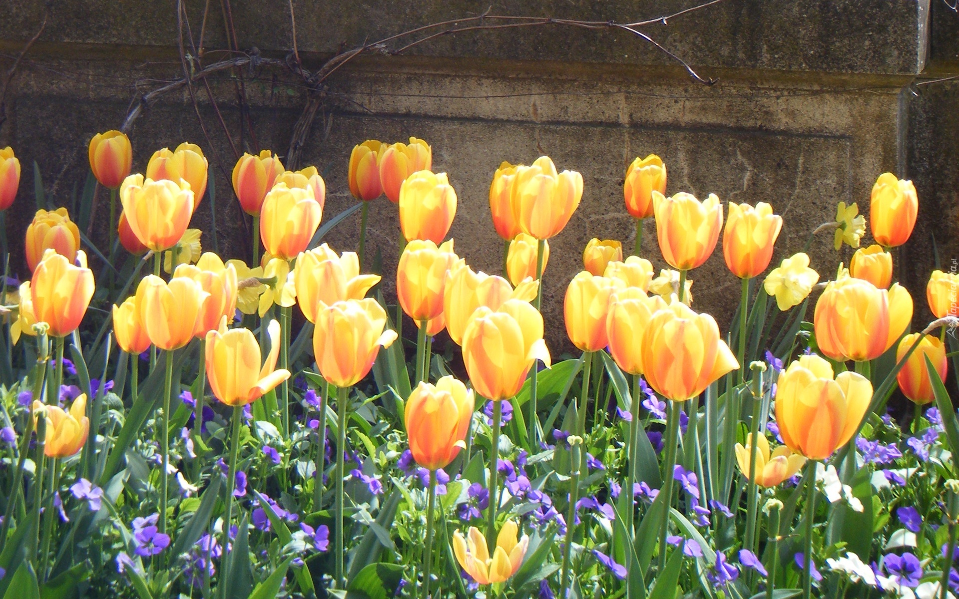 Edytor tapety: Żółte, Tulipany, Mur