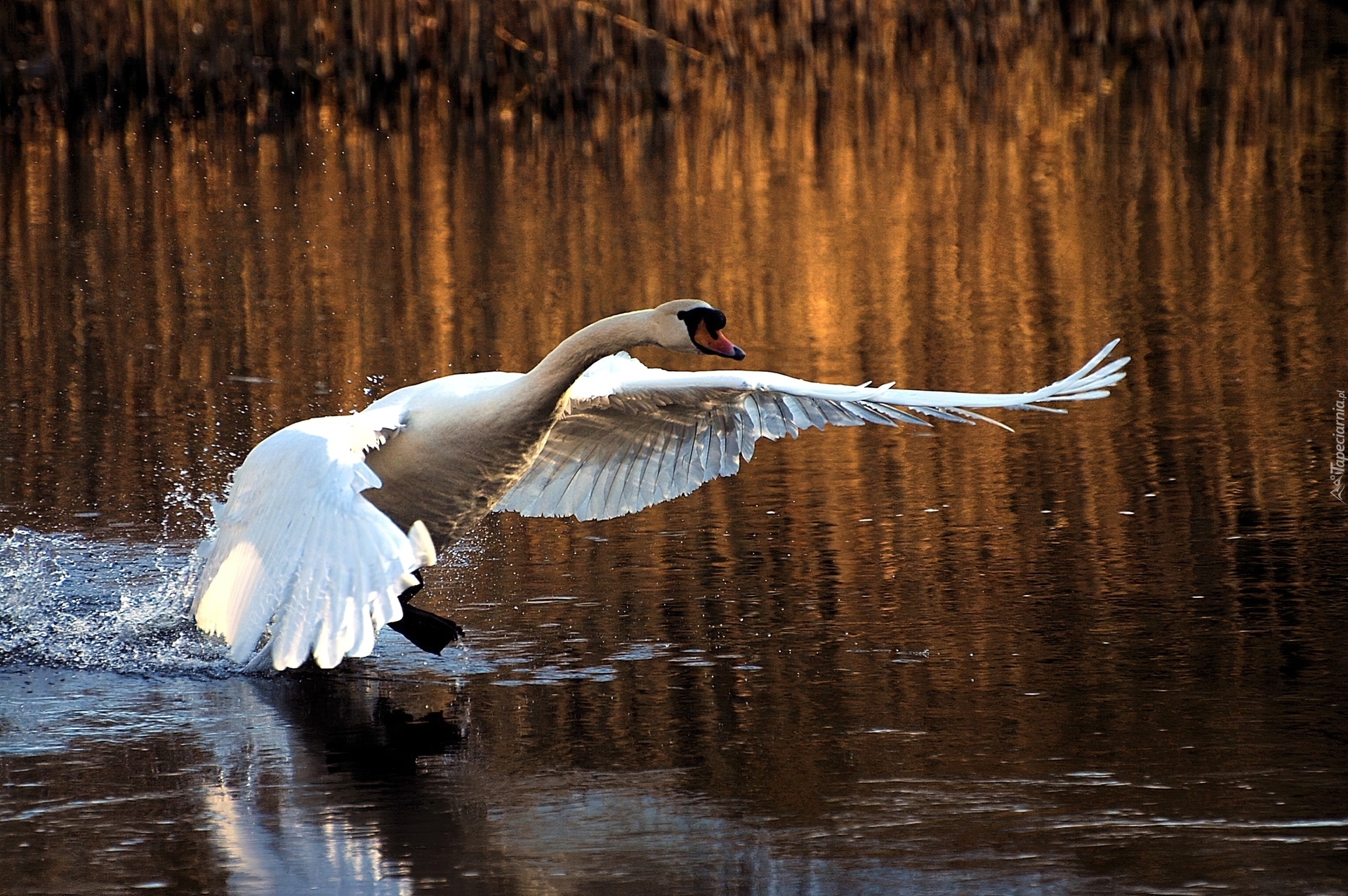 Edytor tapety: Łabędź, Skrzydła, Woda, Jezioro