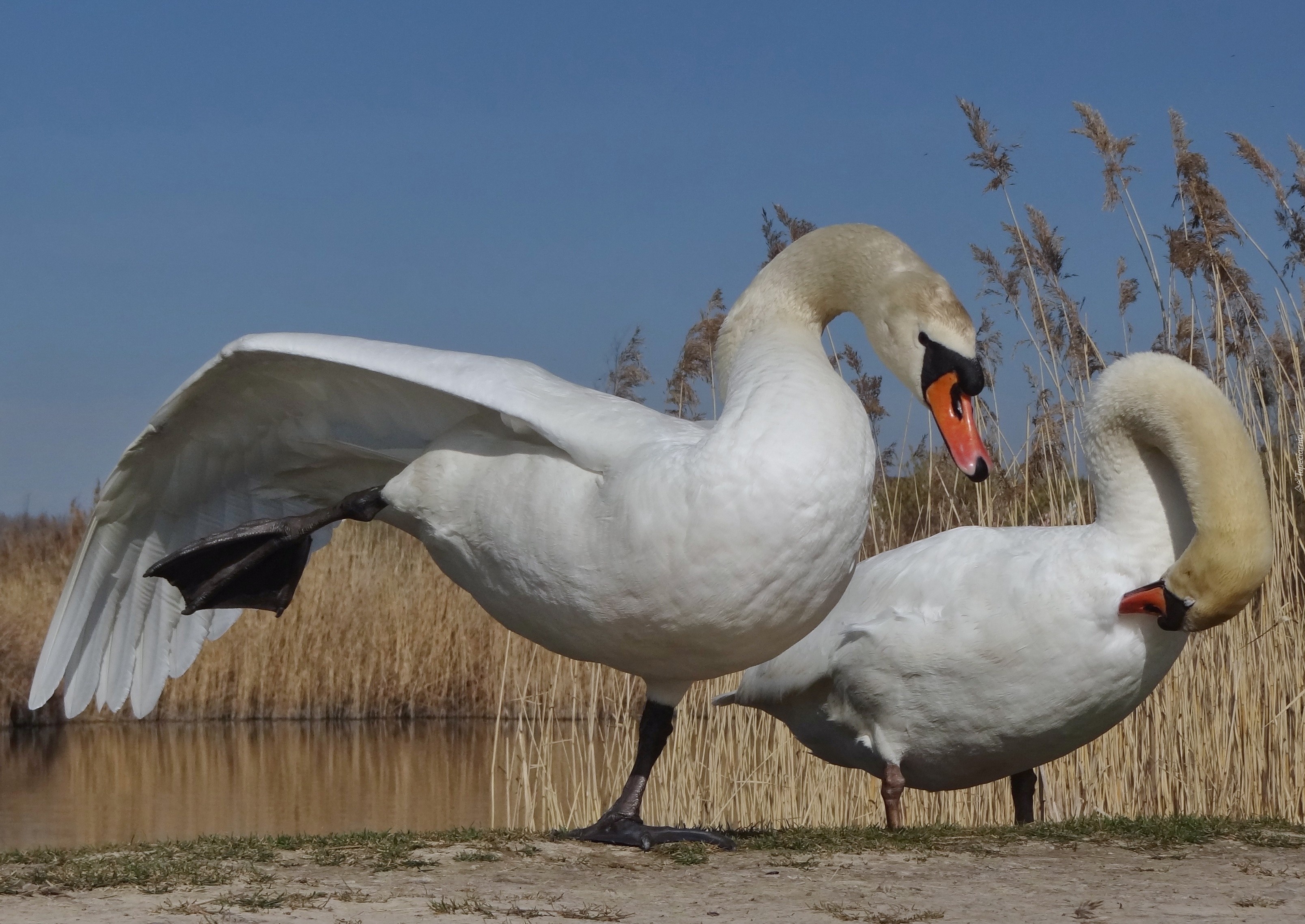 Edytor tapety: Dwa, Łabędzie, Niebo, Woda