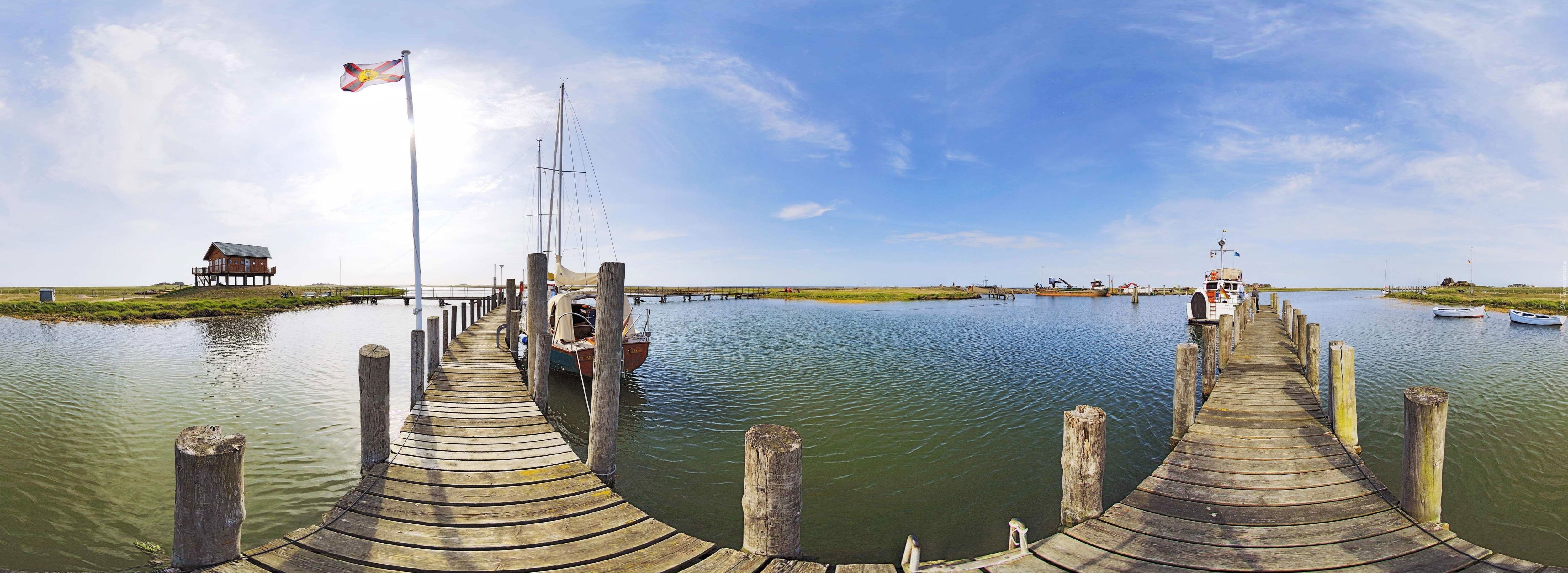 Edytor tapety: Molo, Woda, Łódki, Motorówka