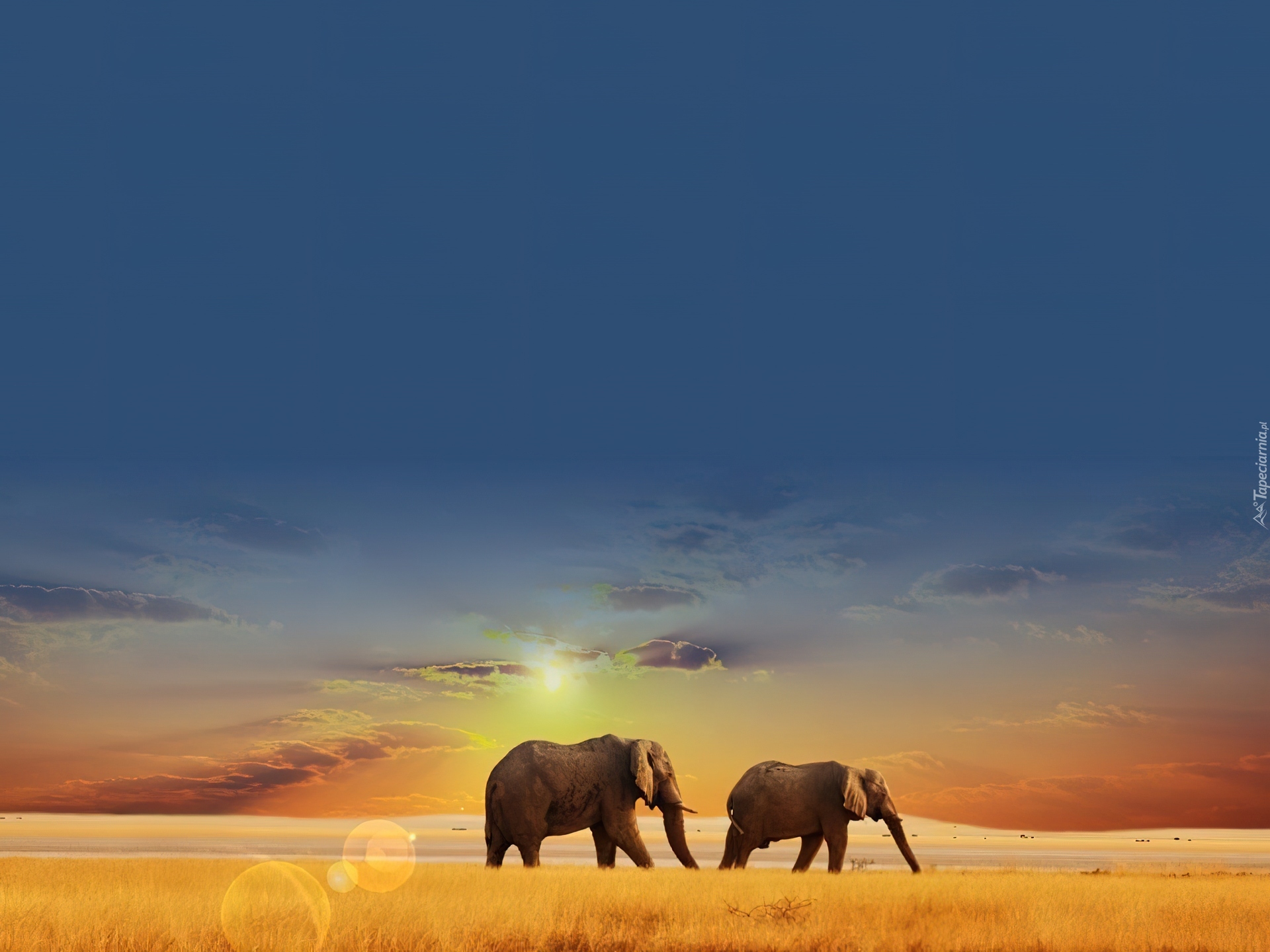 Edytor tapety: Trawy, Słonie, Niebo