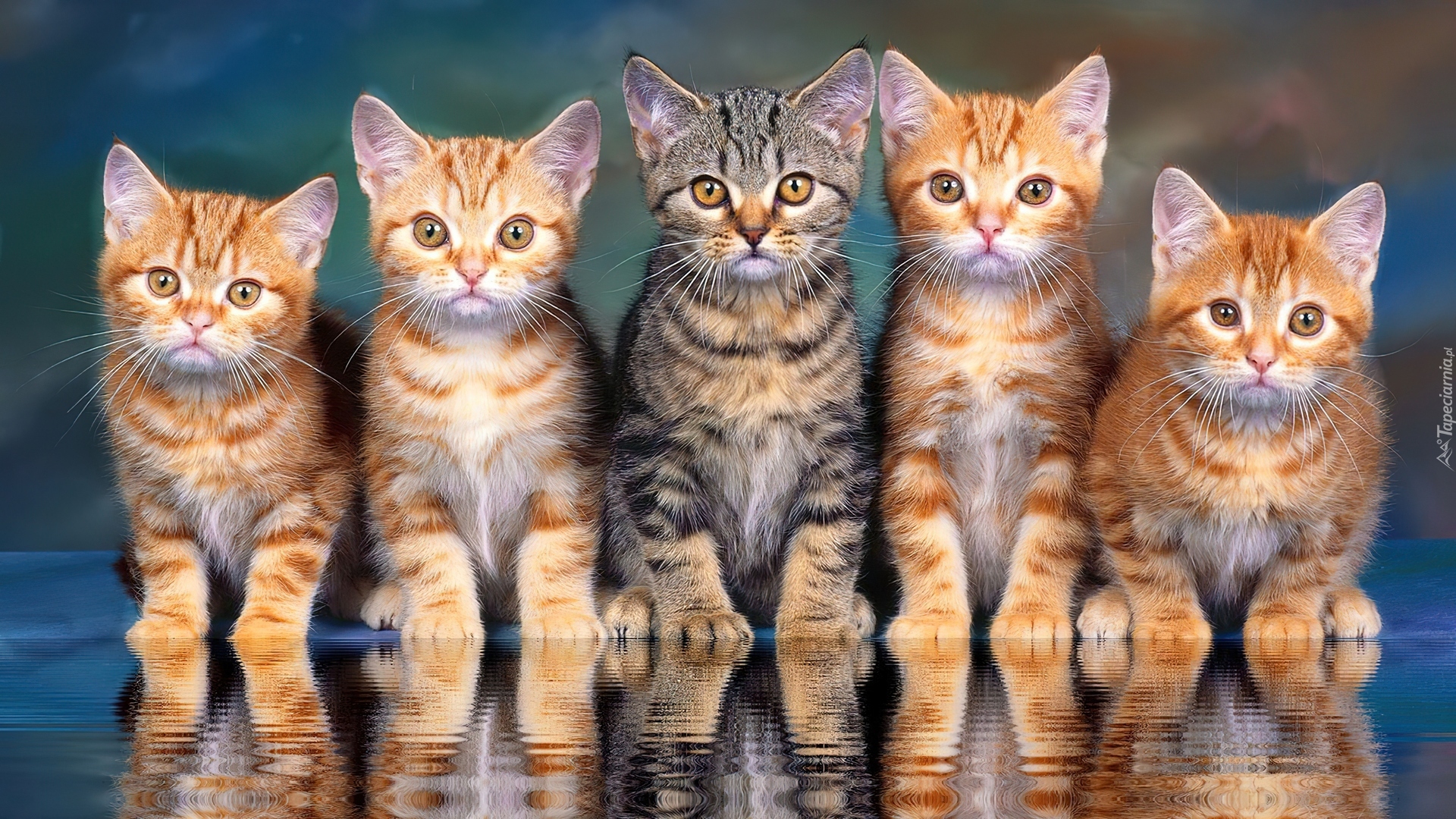 Edytor tapety: Kotki, Rude, Szary, Kot, Odbicie