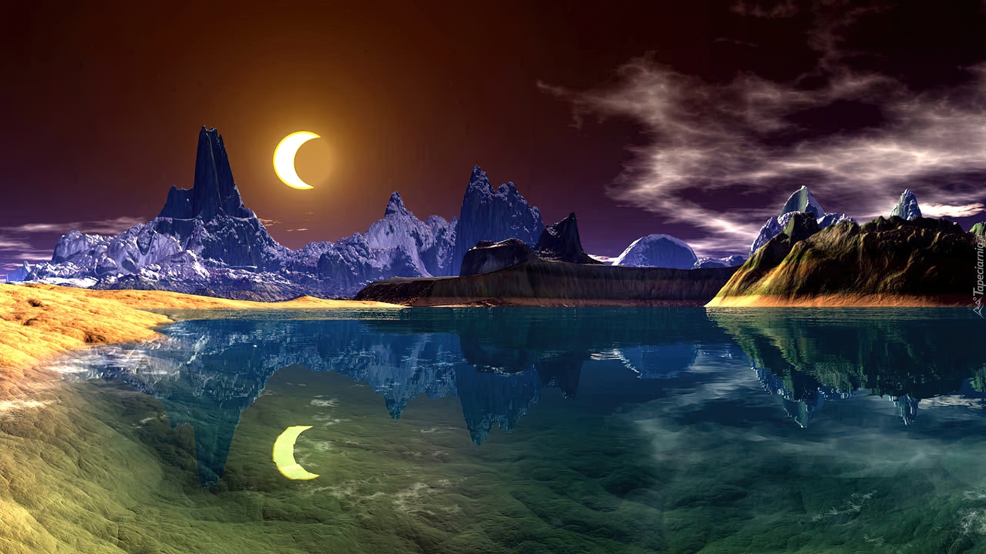Edytor tapety: Jezioro, Księżyc, Odbicie