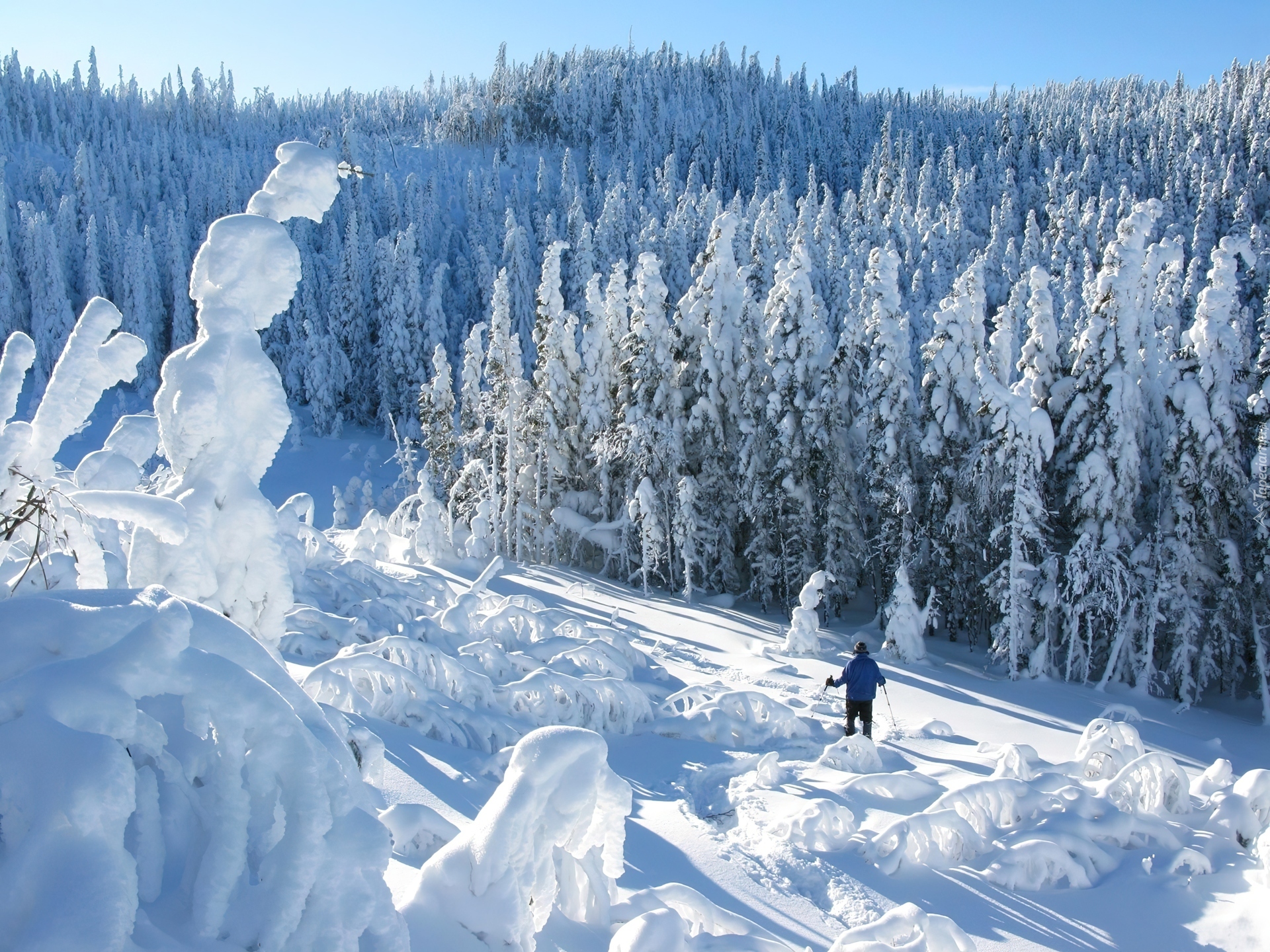 Edytor tapety: Las, Śnieg, Narciarz