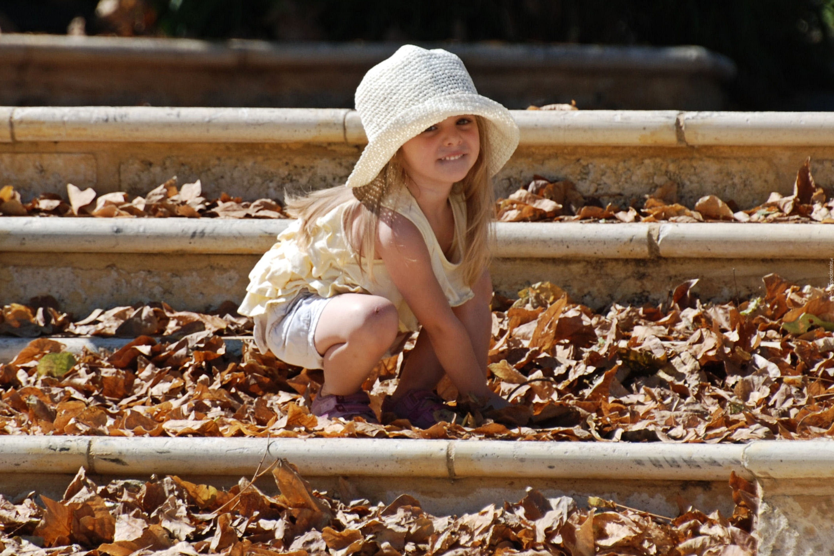 Edytor tapety: Dziewczynka, Liście, Kapelusz