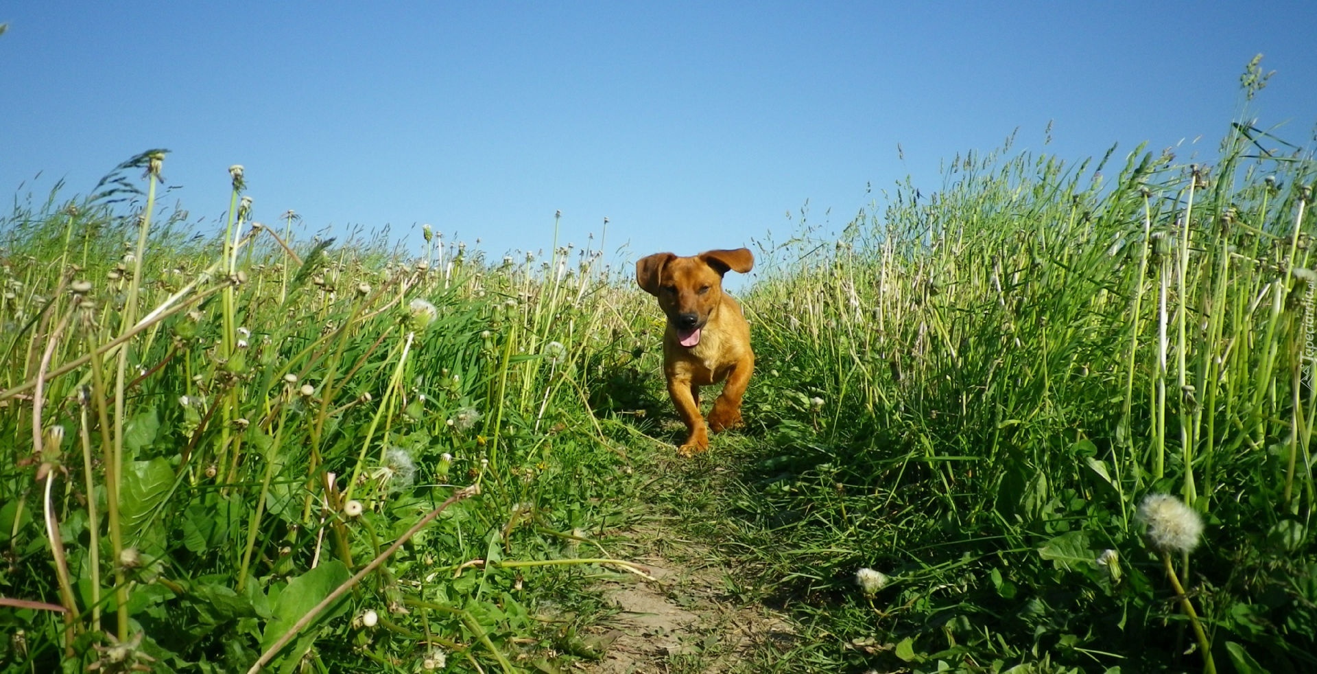 Edytor tapety: Piesek, Trawa, Mlecz