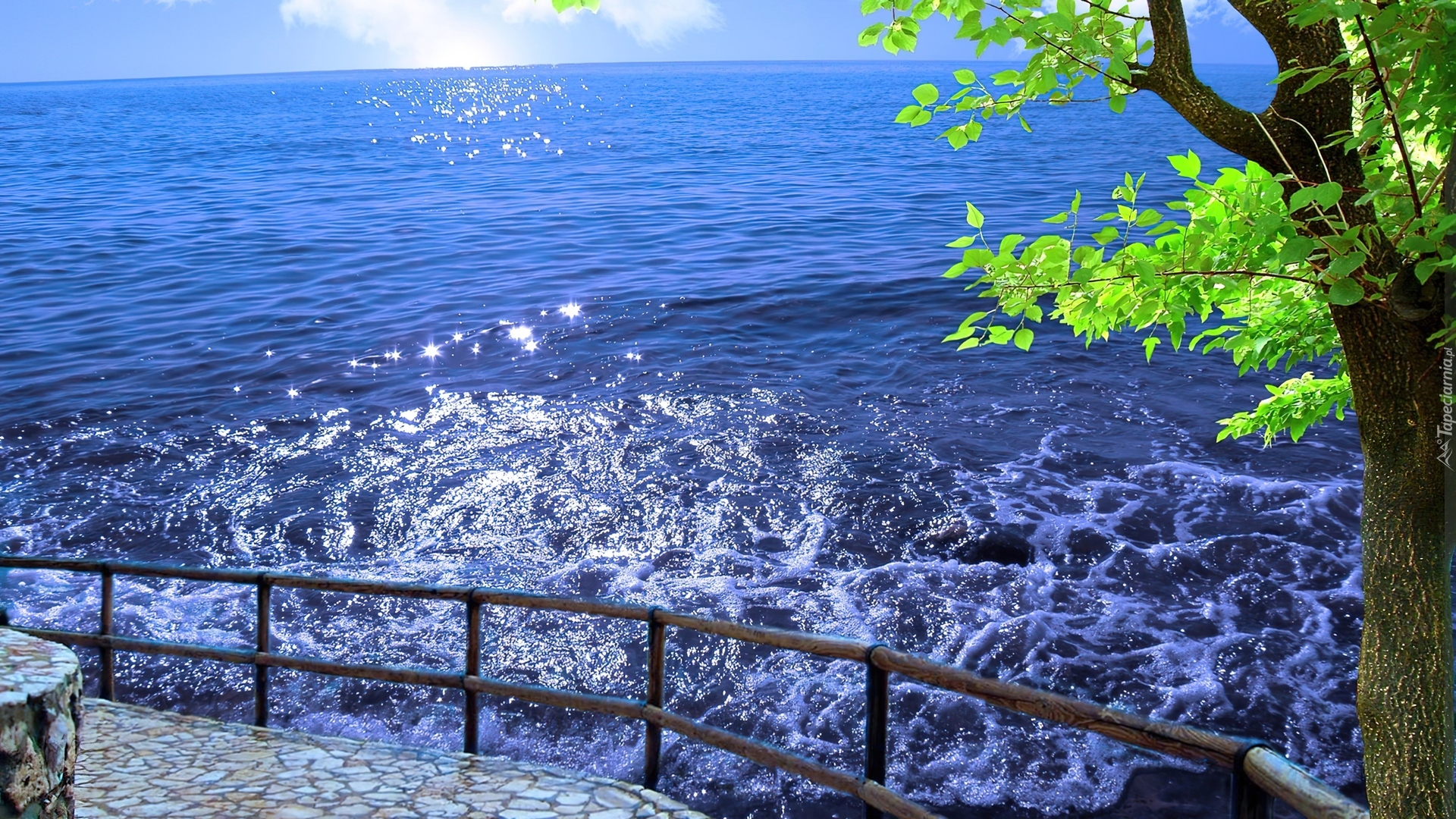 Edytor tapety: Ocean, Balustrada, Drzewo
