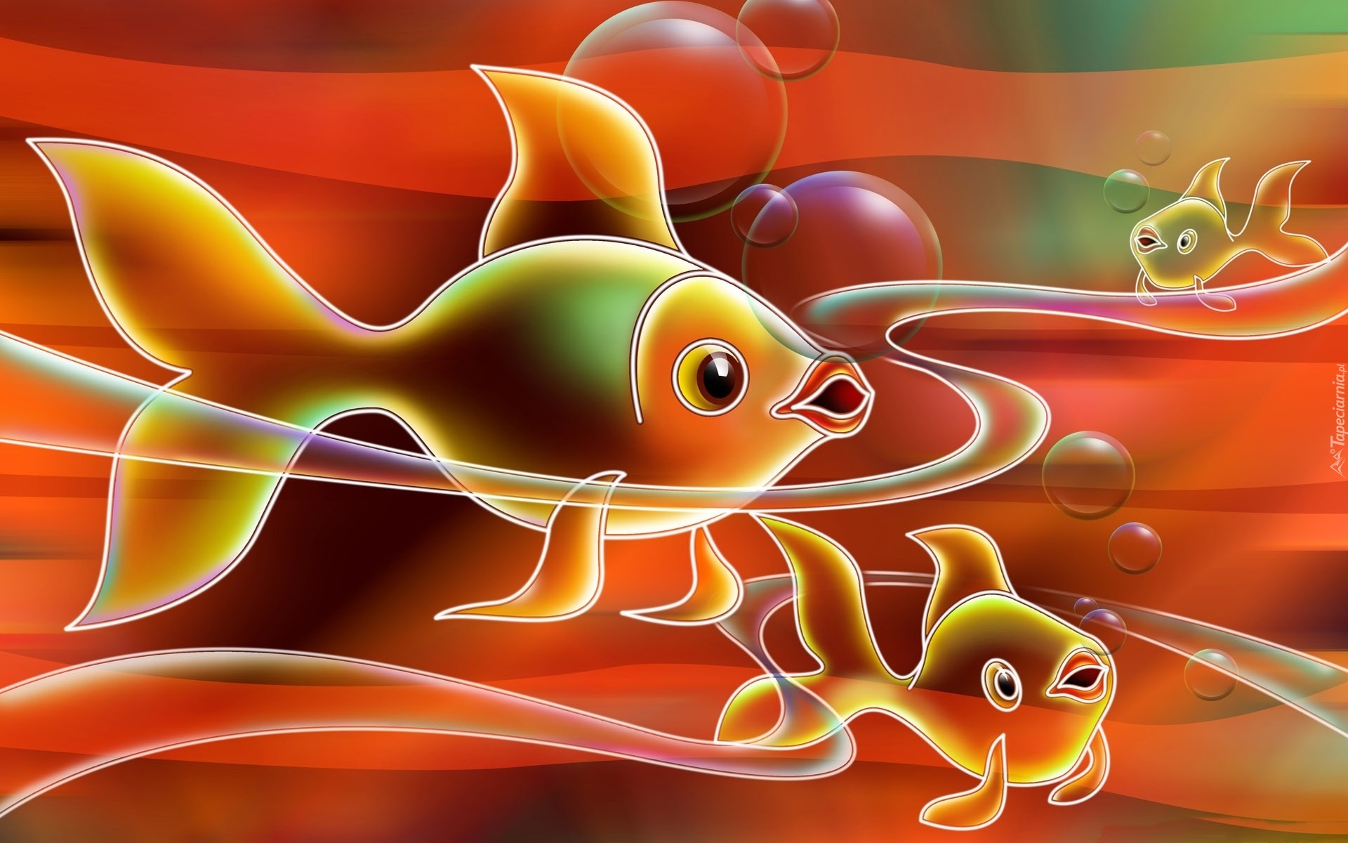 Edytor tapety: Kolorowe, Rybki, Woda, Bąbelki