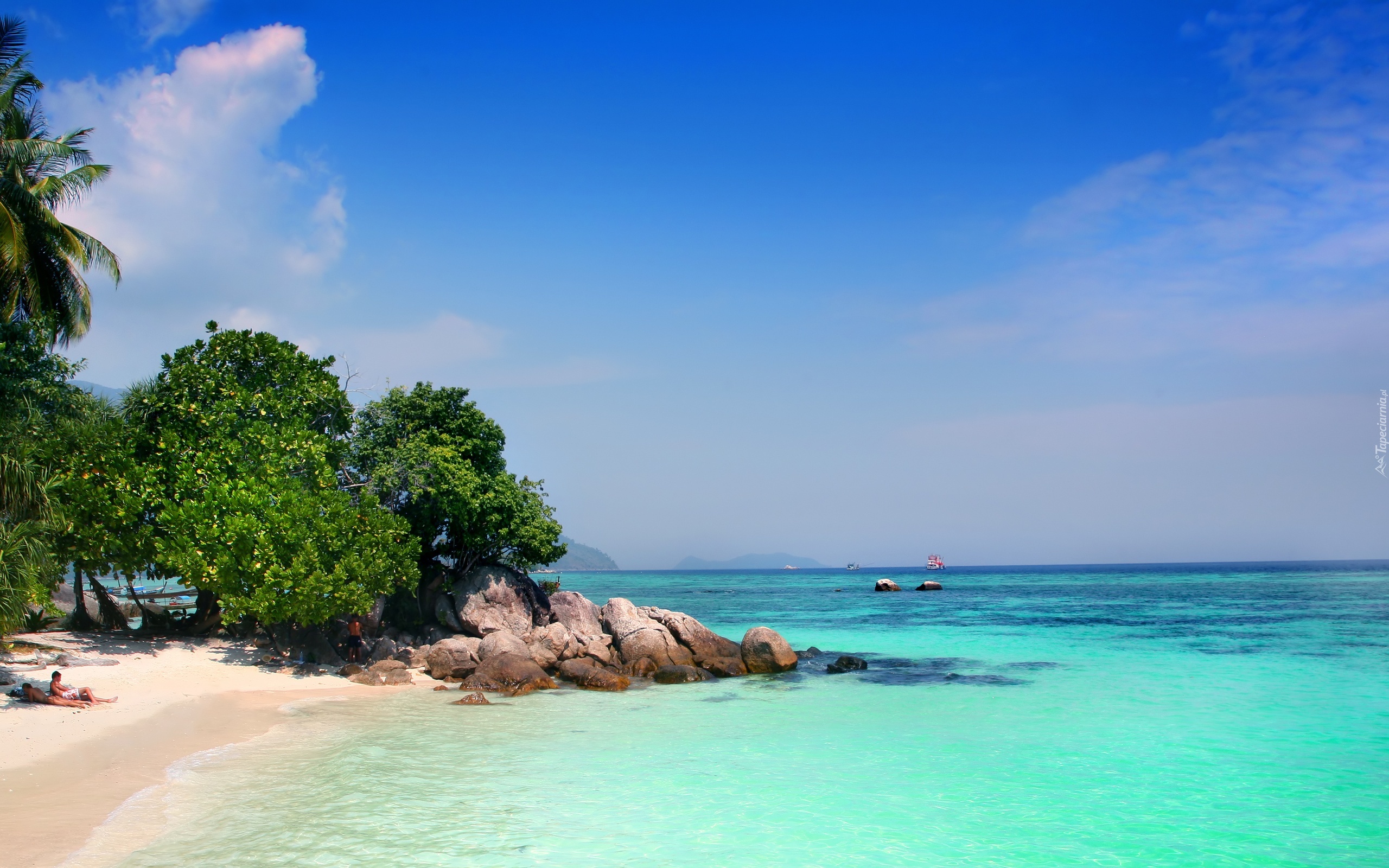 Edytor tapety: Morze, Plaża, Kamienie, Drzewa