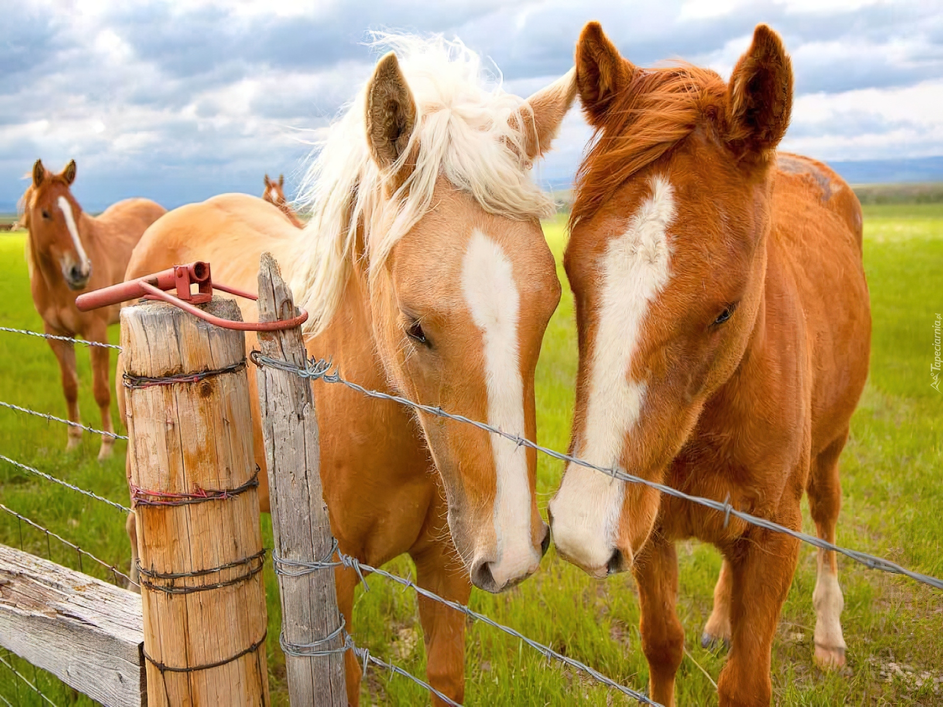 Edytor tapety: Konie, Ogrodzenie, Trawa, Niebo, Chmury