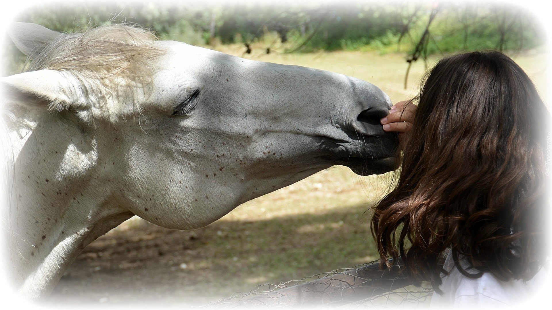 Edytor tapety: Koń, Siwek, Dziewczyna