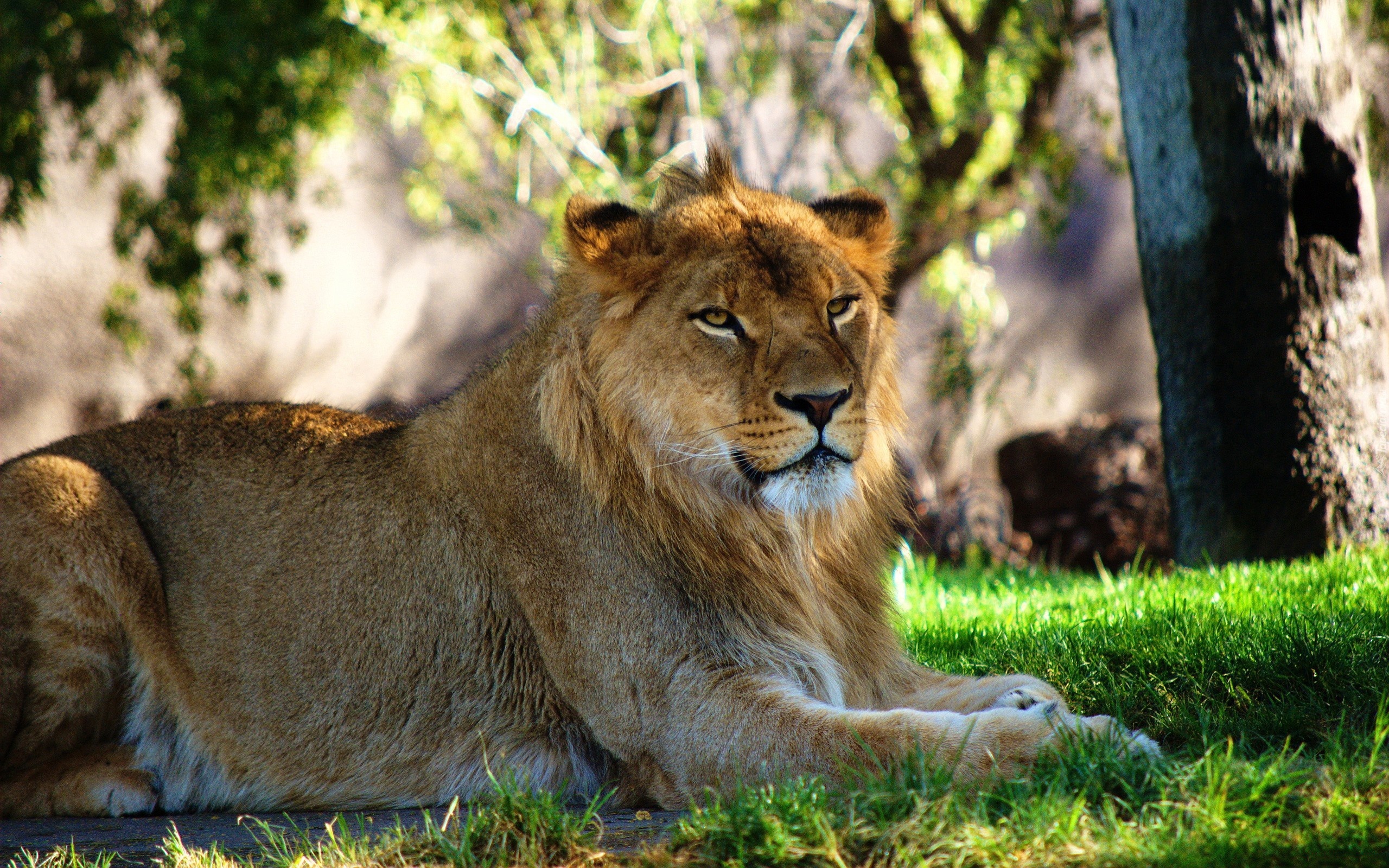 Edytor tapety: Lew, Odpoczynek, Trawa