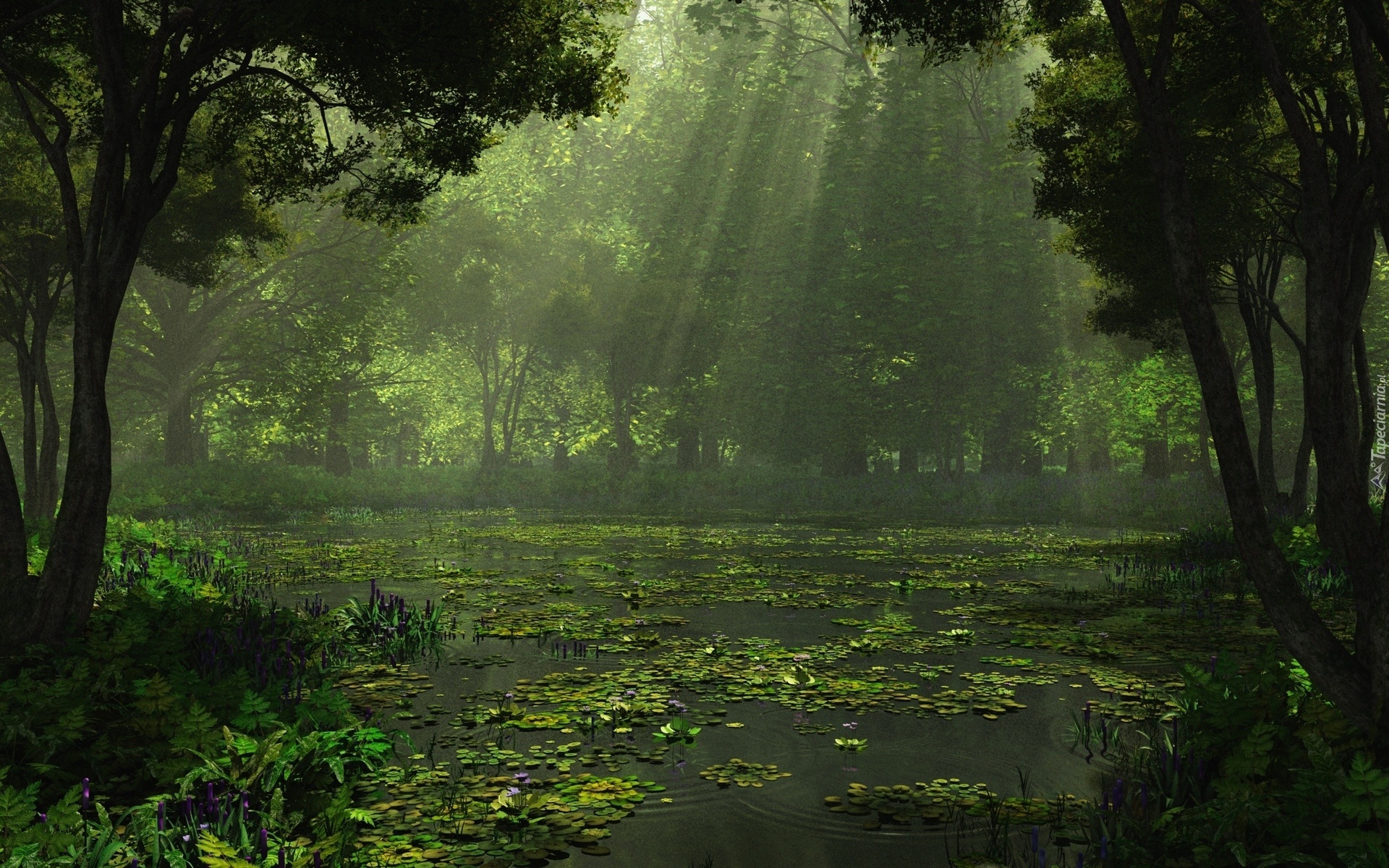 Edytor tapety: Las, Promienie, Słoneczne, Woda