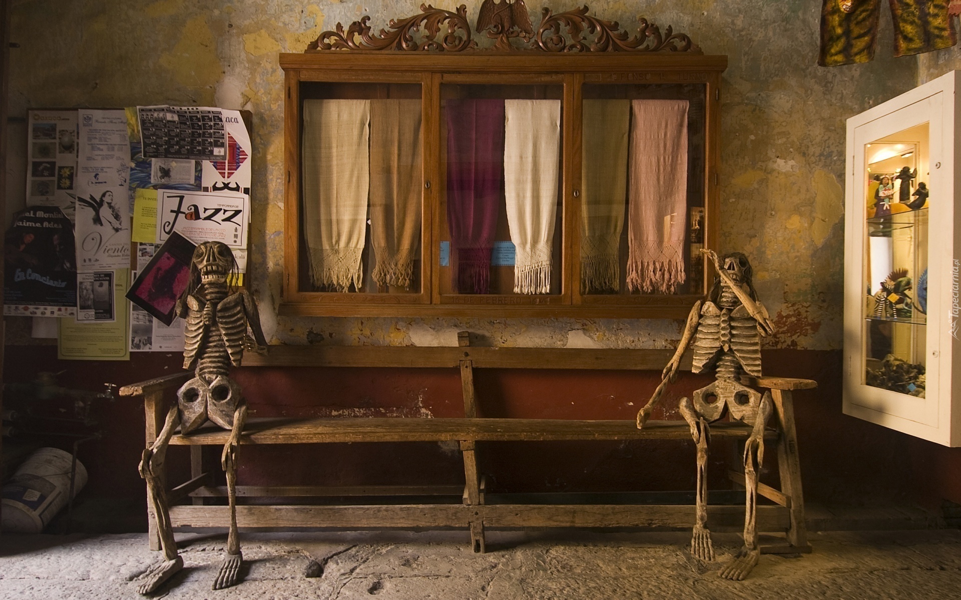 Edytor tapety: Ławka, Gabloty, Dwa, Kościotrupy