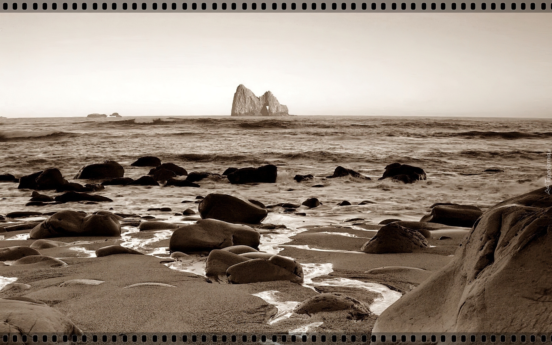 Edytor tapety: Morze, Fale, Skały, Sepia
