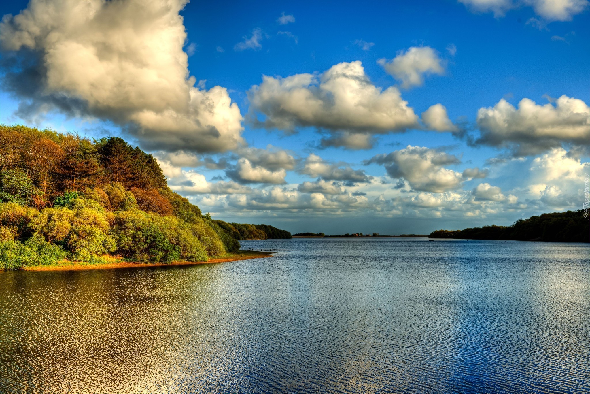 Edytor tapety: Rzeka, Drzewa, Niebo, Chmury
