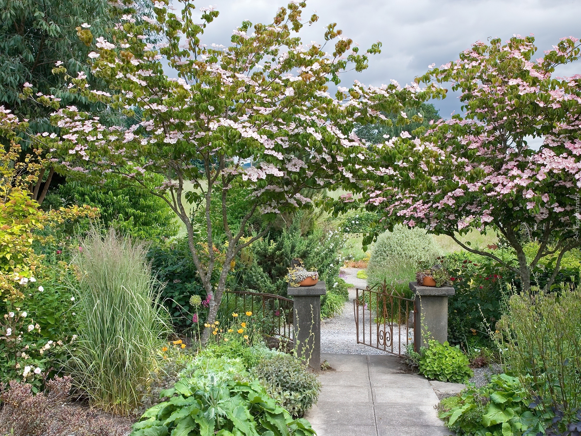 Edytor tapety: Ogród, Kwiaty, Bramka