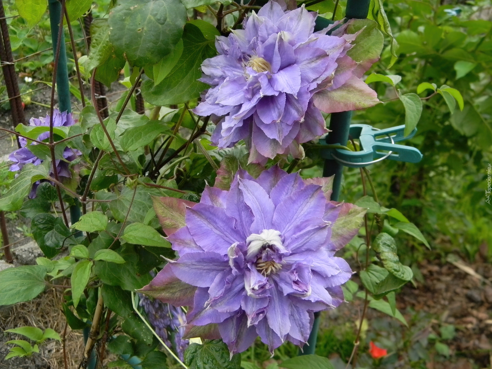Edytor tapety: Fioletowe, Powojniki, Na, Pergoli