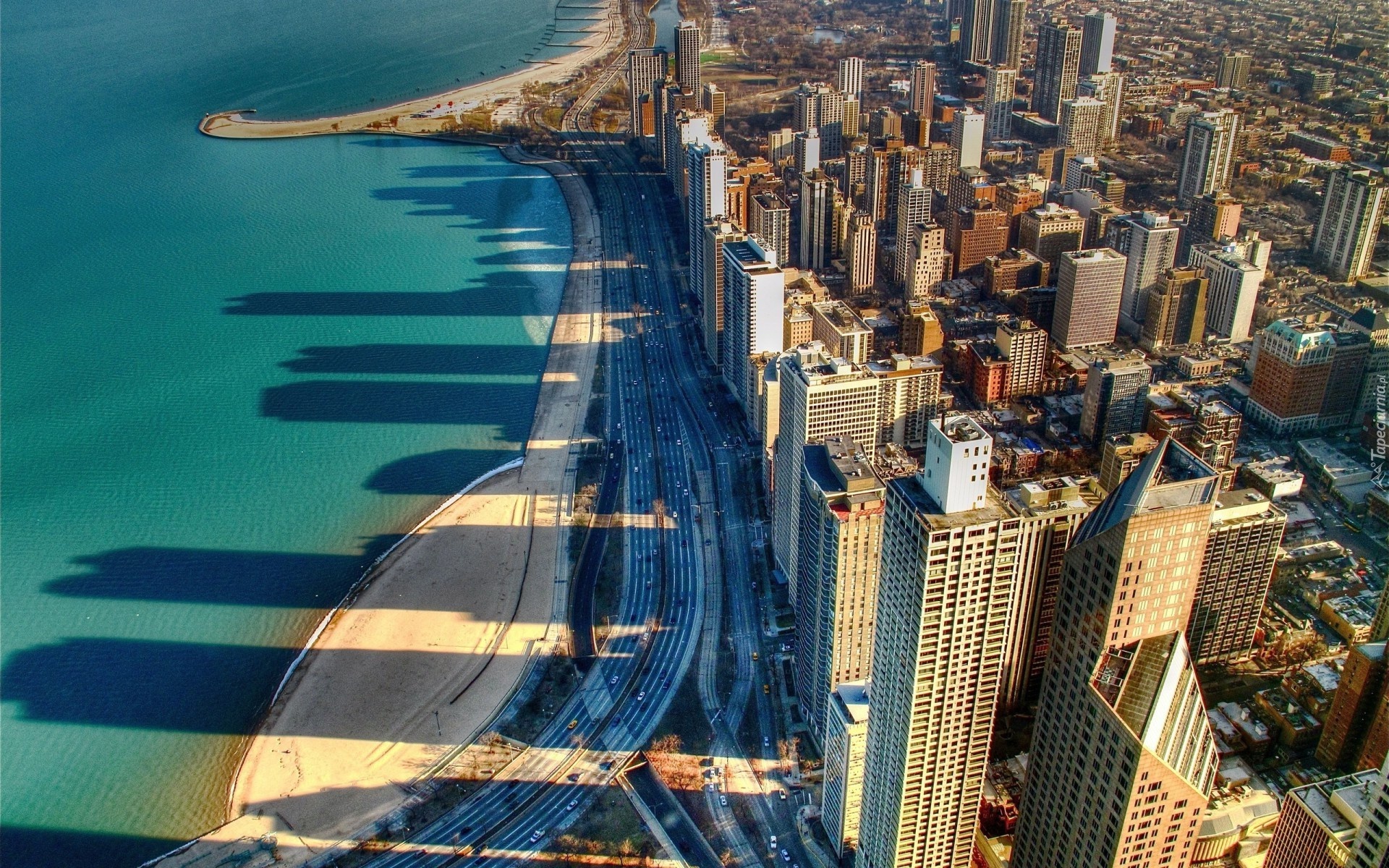 Edytor tapety: Drapacze, Chmur, Miasto, Brzeg