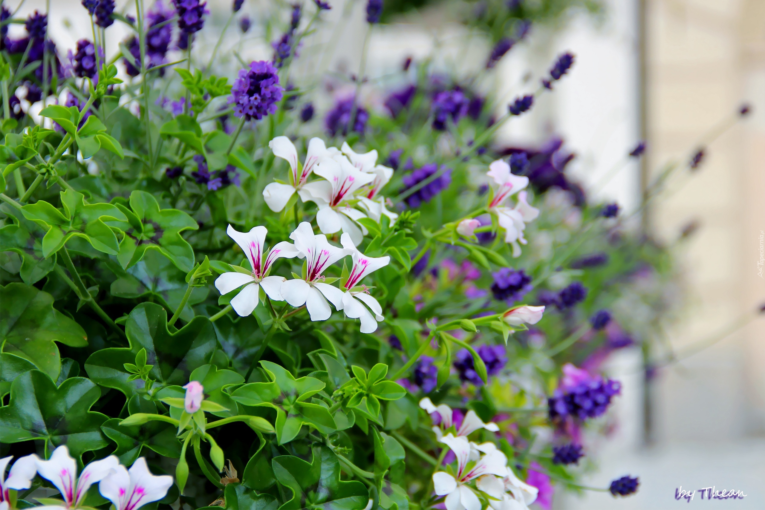 Edytor tapety: Białe, Pelargonie, Lawenda