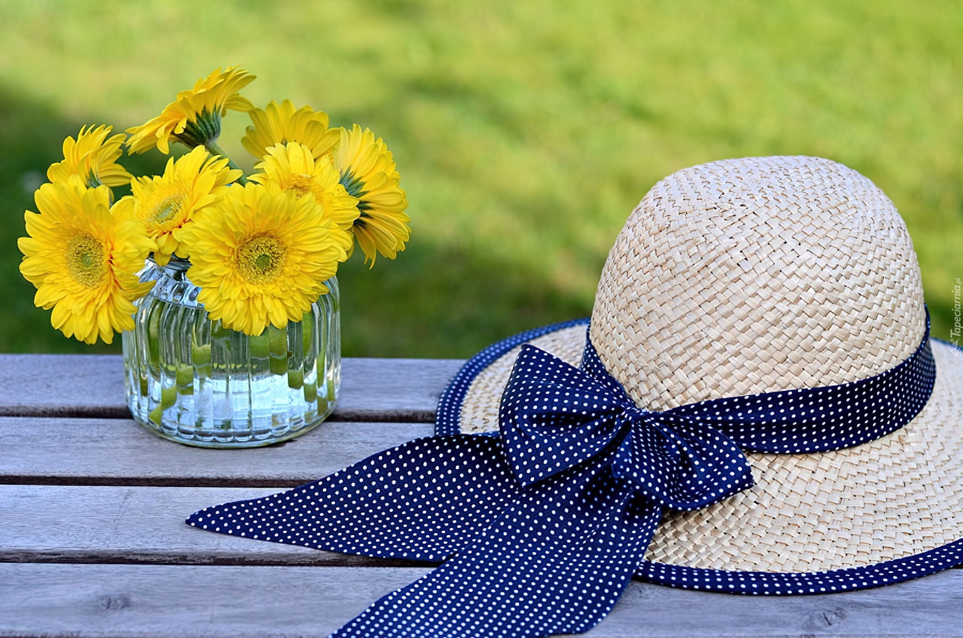 Edytor tapety: Żółte, Margerytki, Letni, Damski, Kapelusz, Kokarda