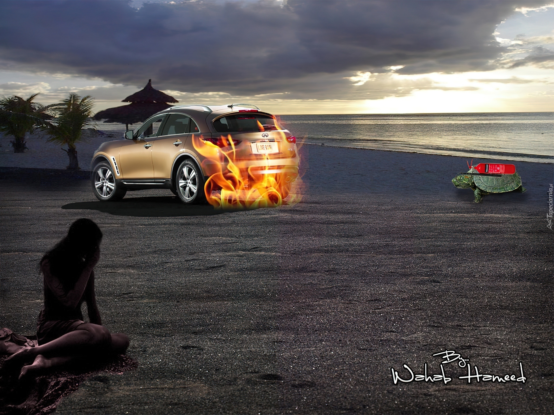 Edytor tapety: Samochód, Ogień, Morze, Plaża