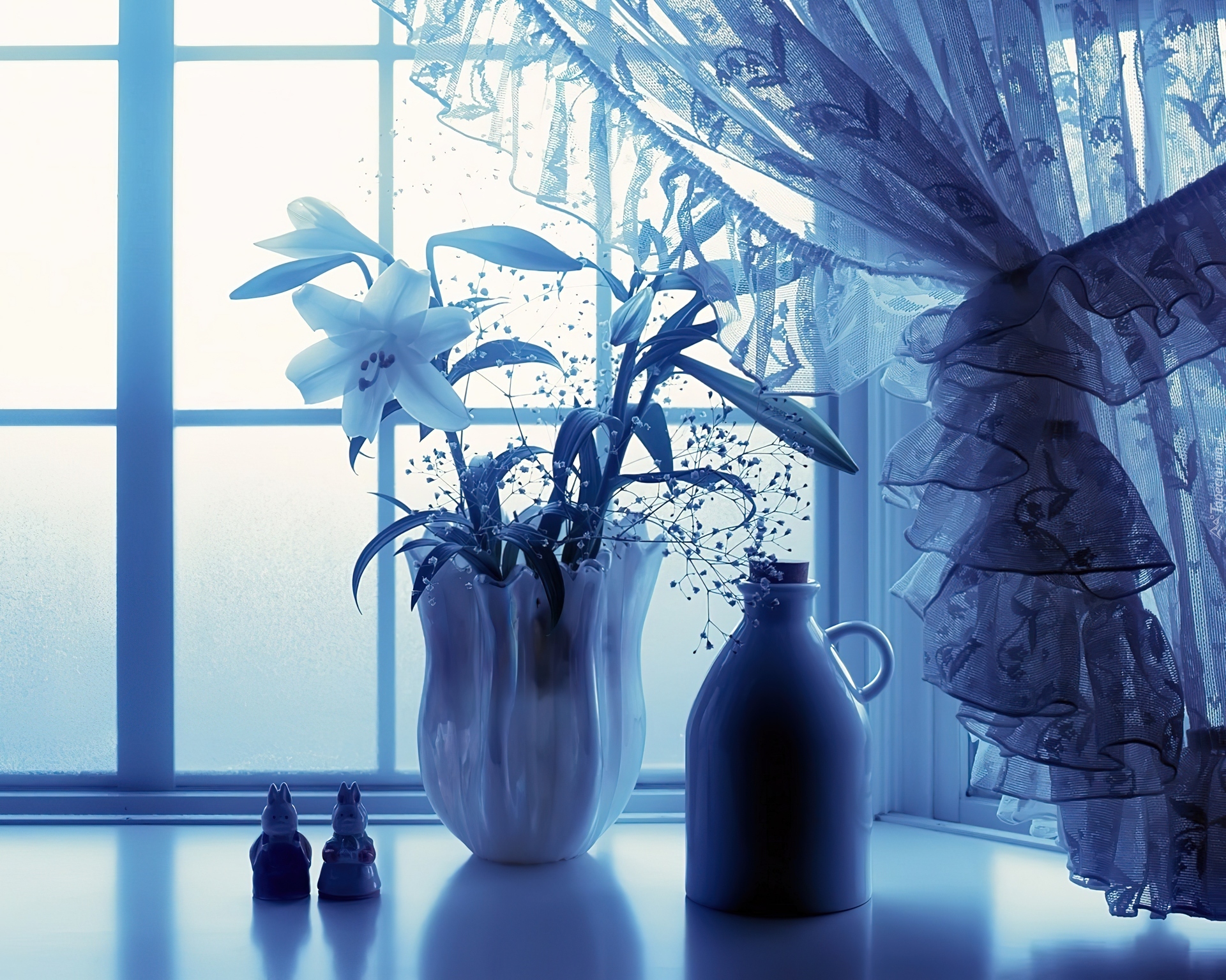 Edytor tapety: Okno, Wazon, Kwiaty, Zasłonka
