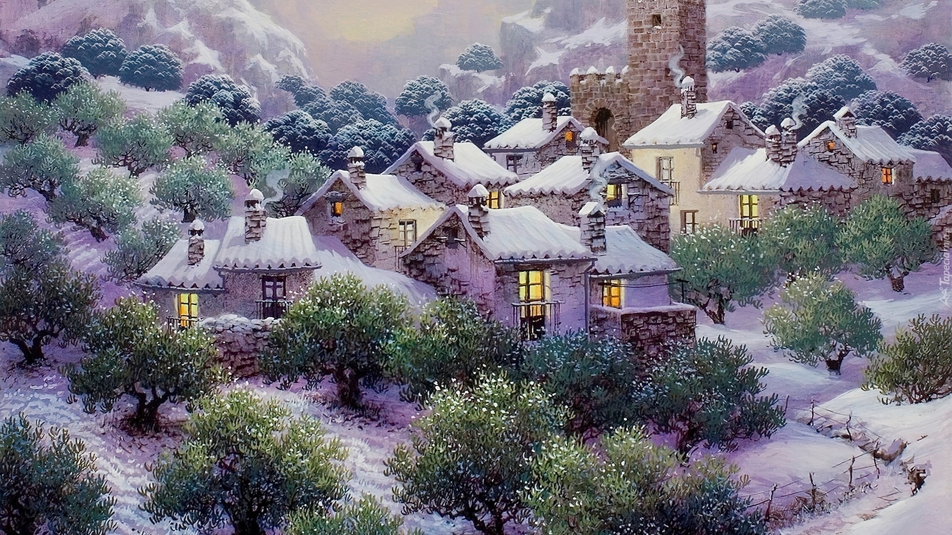 Edytor tapety: Zima, Drzewa, Budynki