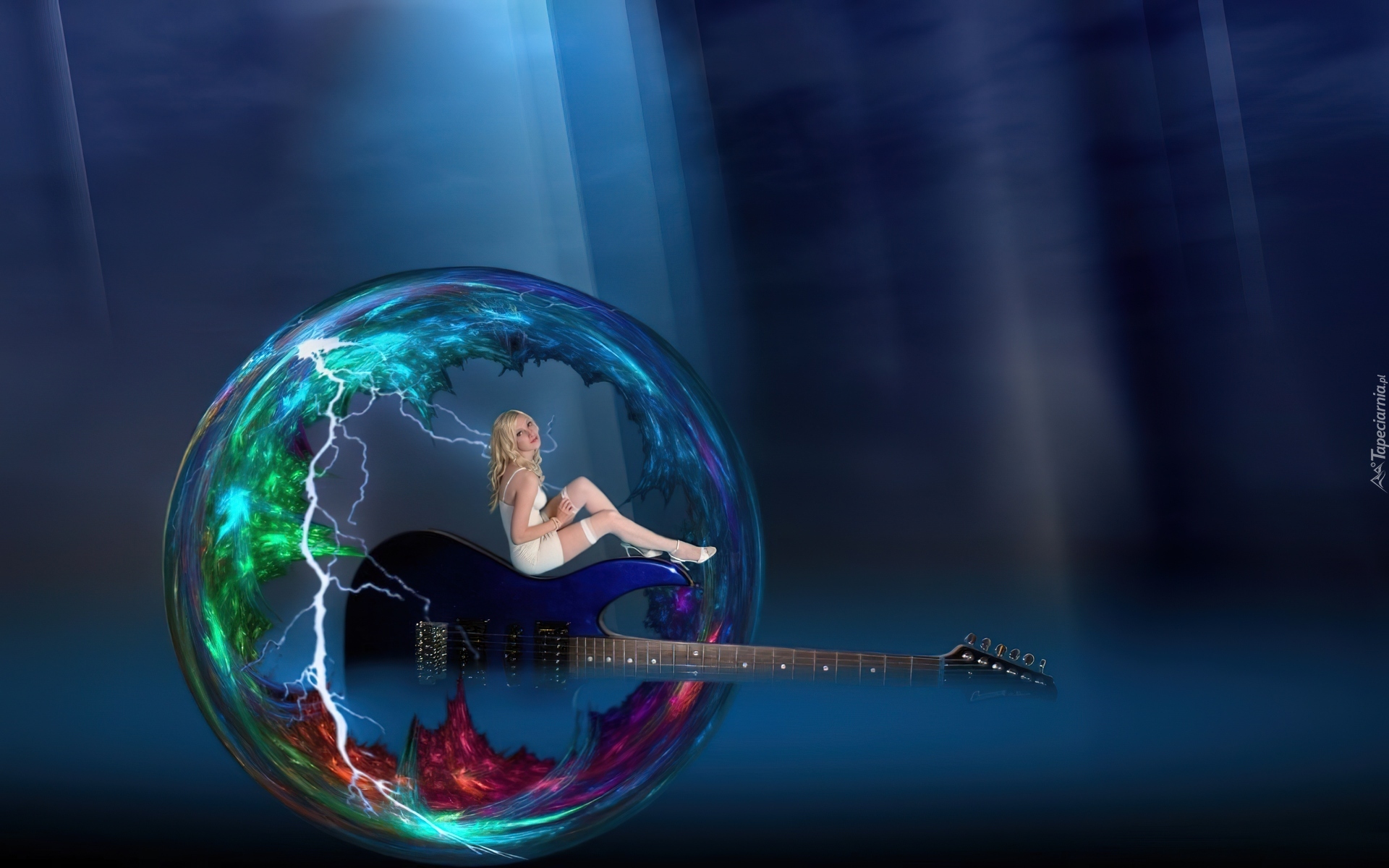 Edytor tapety: Dziewczyna, Gitara, Kula