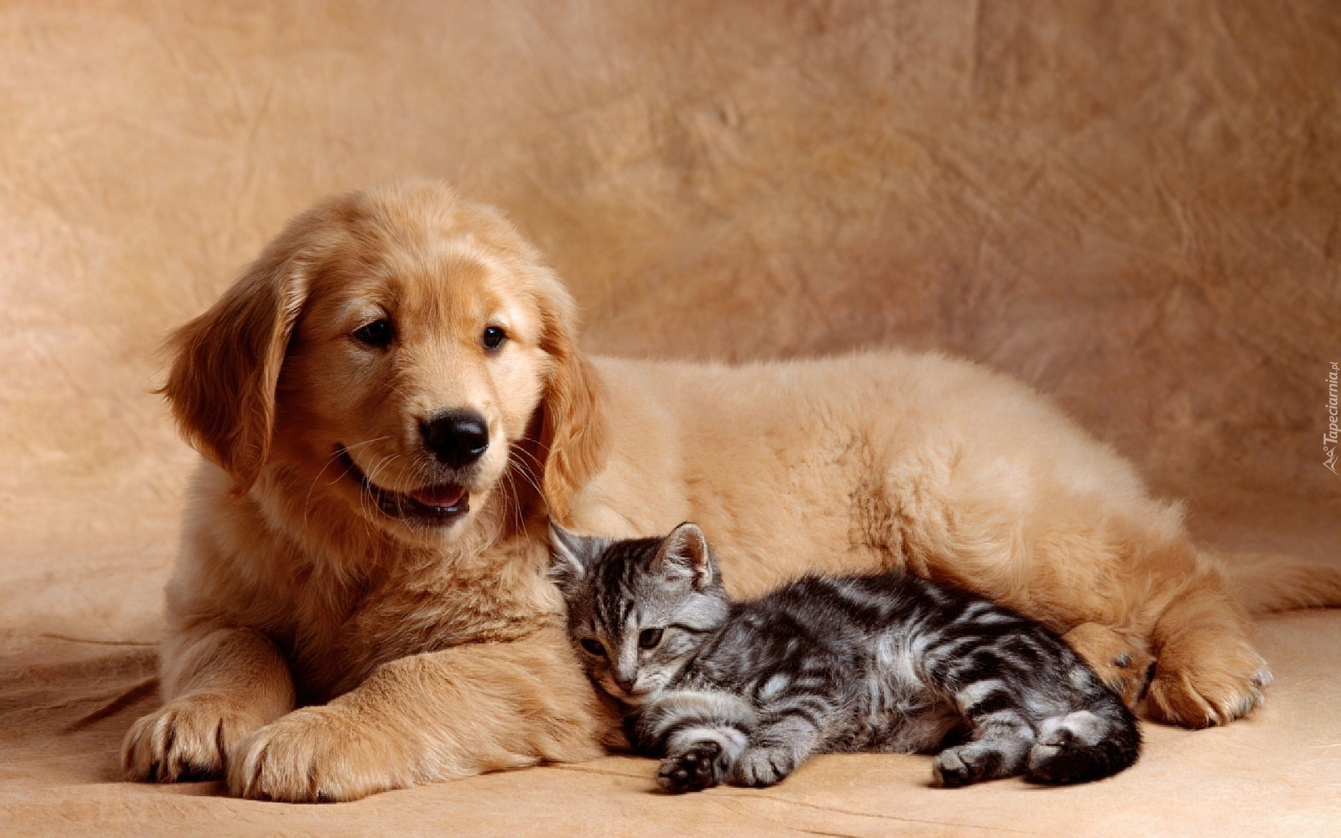 Edytor tapety: Mały, Szczeniak, Golden Retriever, Kotek