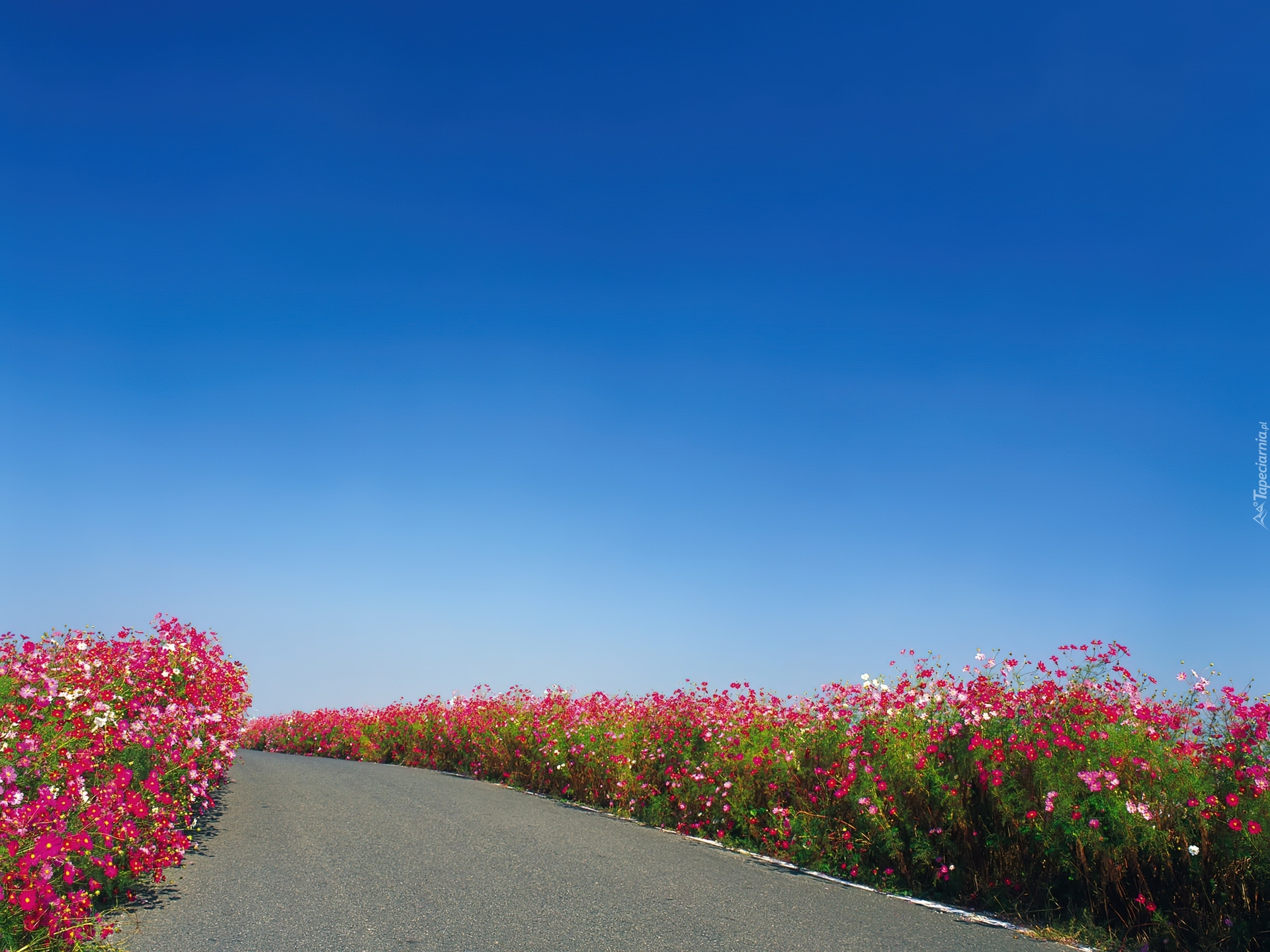 Edytor tapety: Droga, Kwiaty, Niebo