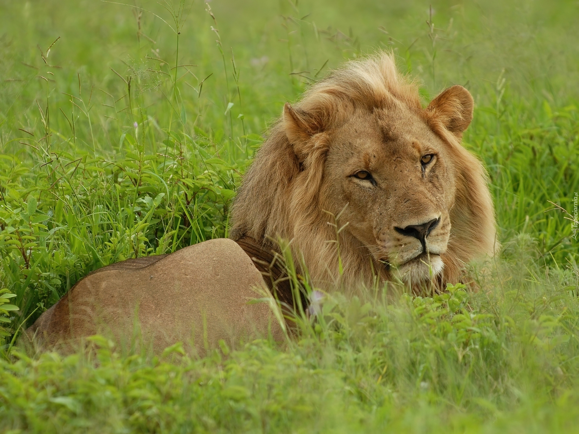 Edytor tapety: Lew, Trawa