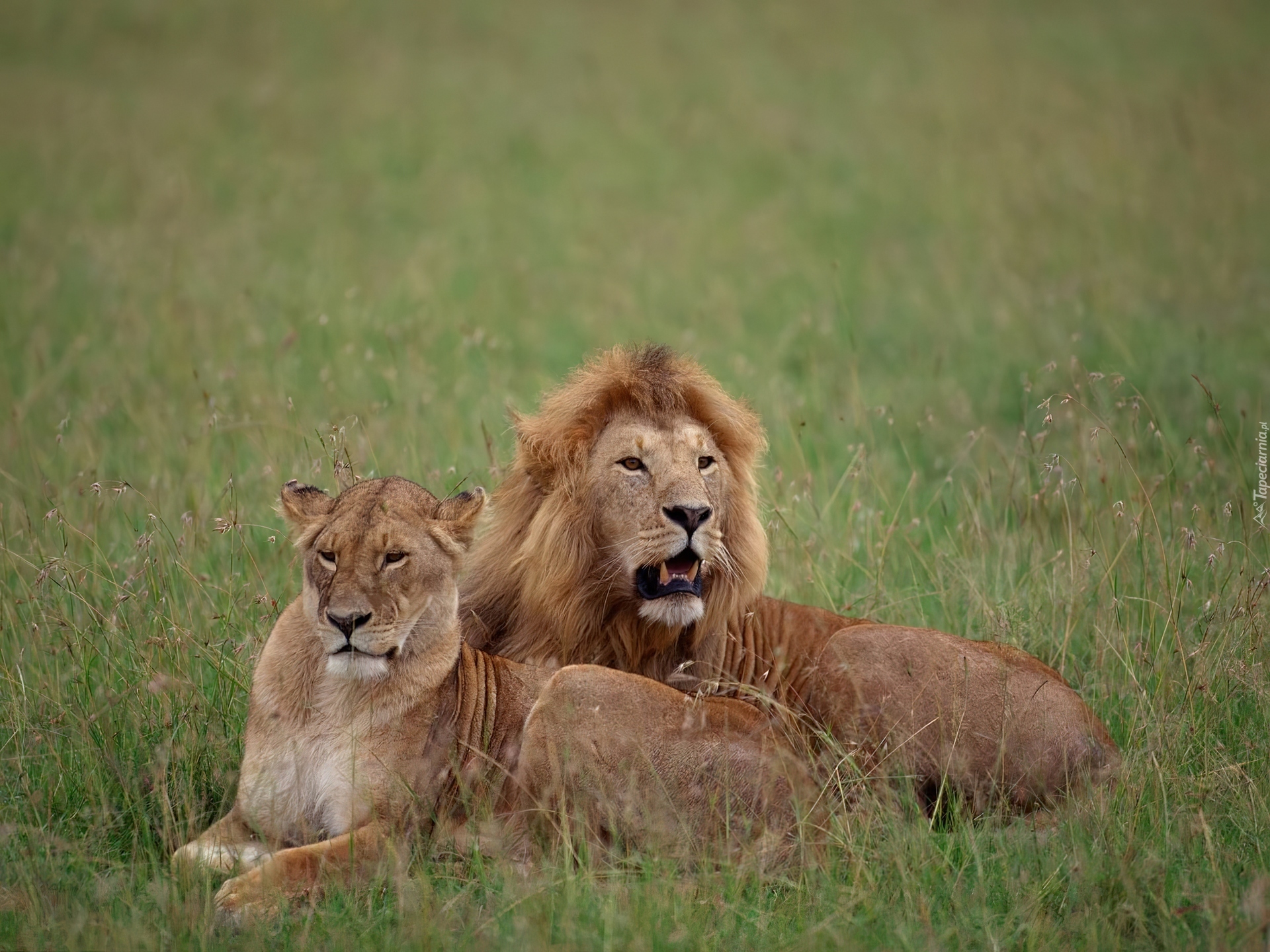 Edytor tapety: Lew, Lwica, Trawa