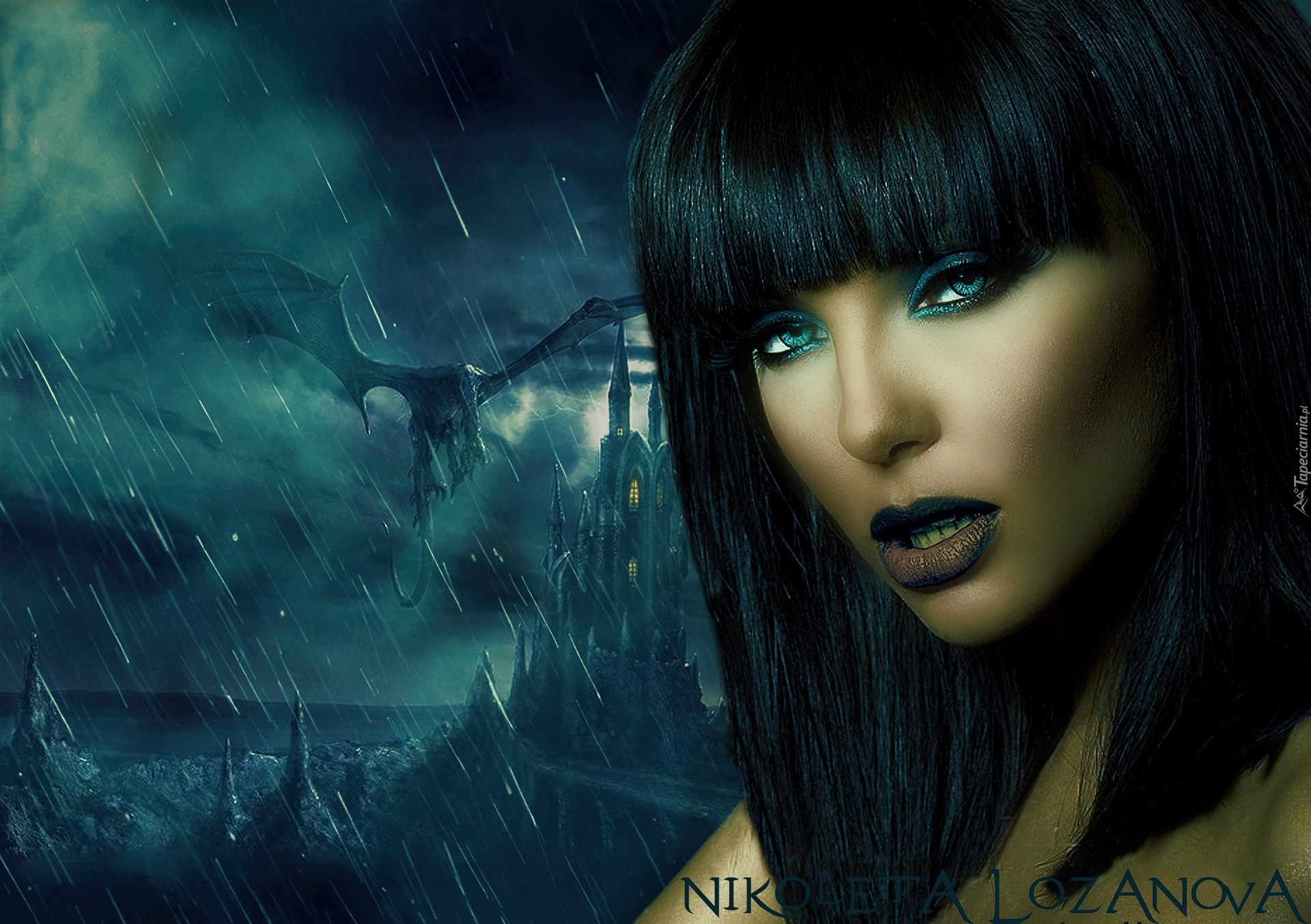 Edytor tapety: Kobieta, Zamek, Deszcz