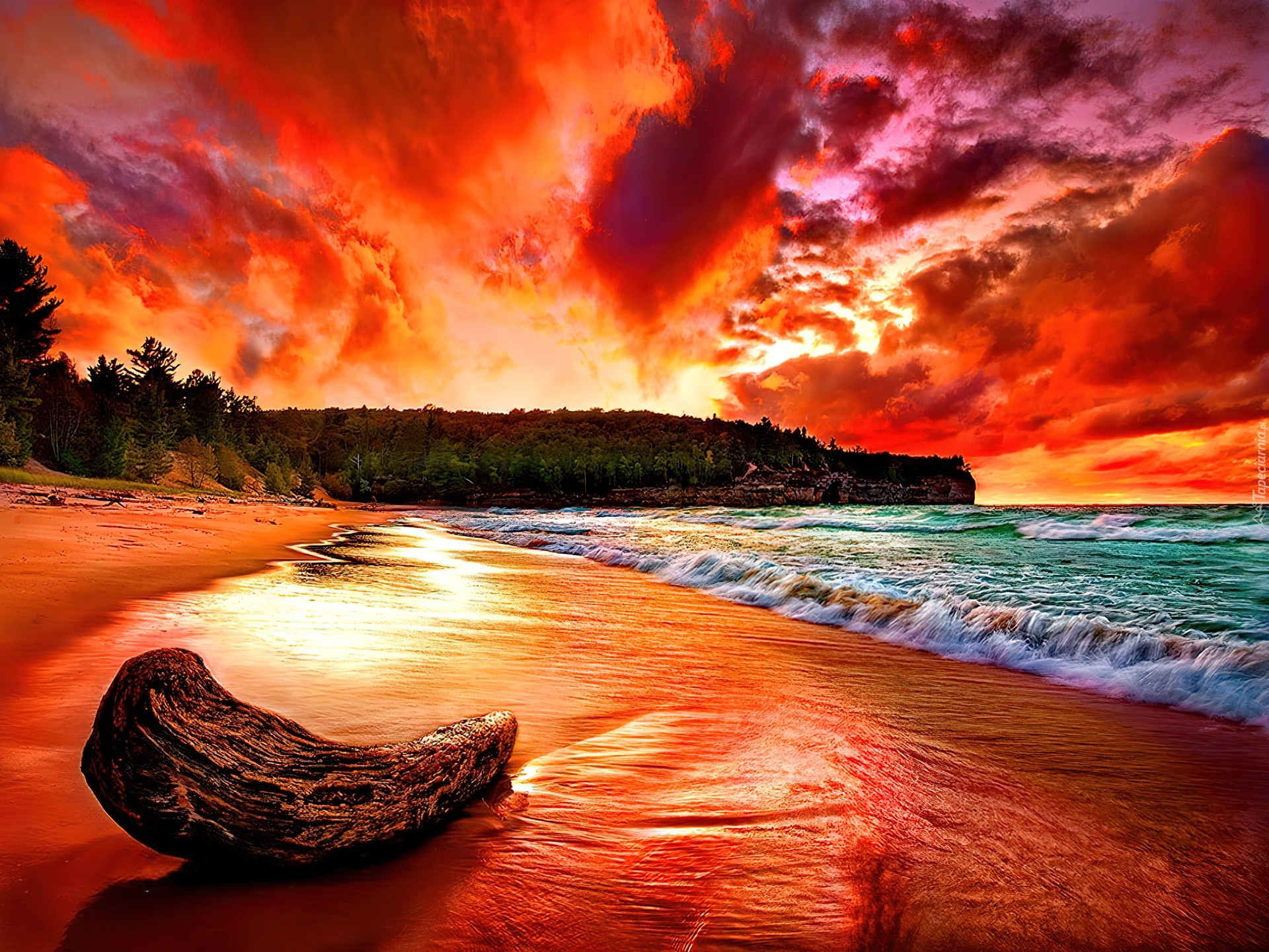 Edytor tapety: Zachód, Słońca, Morze, Plaża, Lasy
