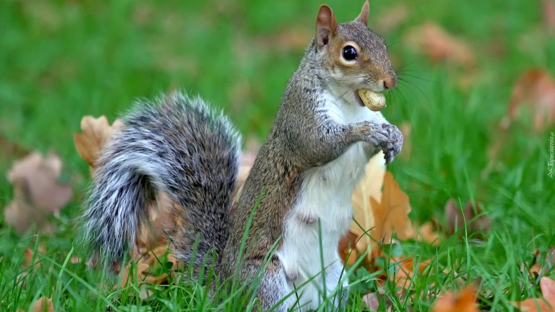 Edytor tapety: Wiewiórka, Orzeszek, Trawa, Liście