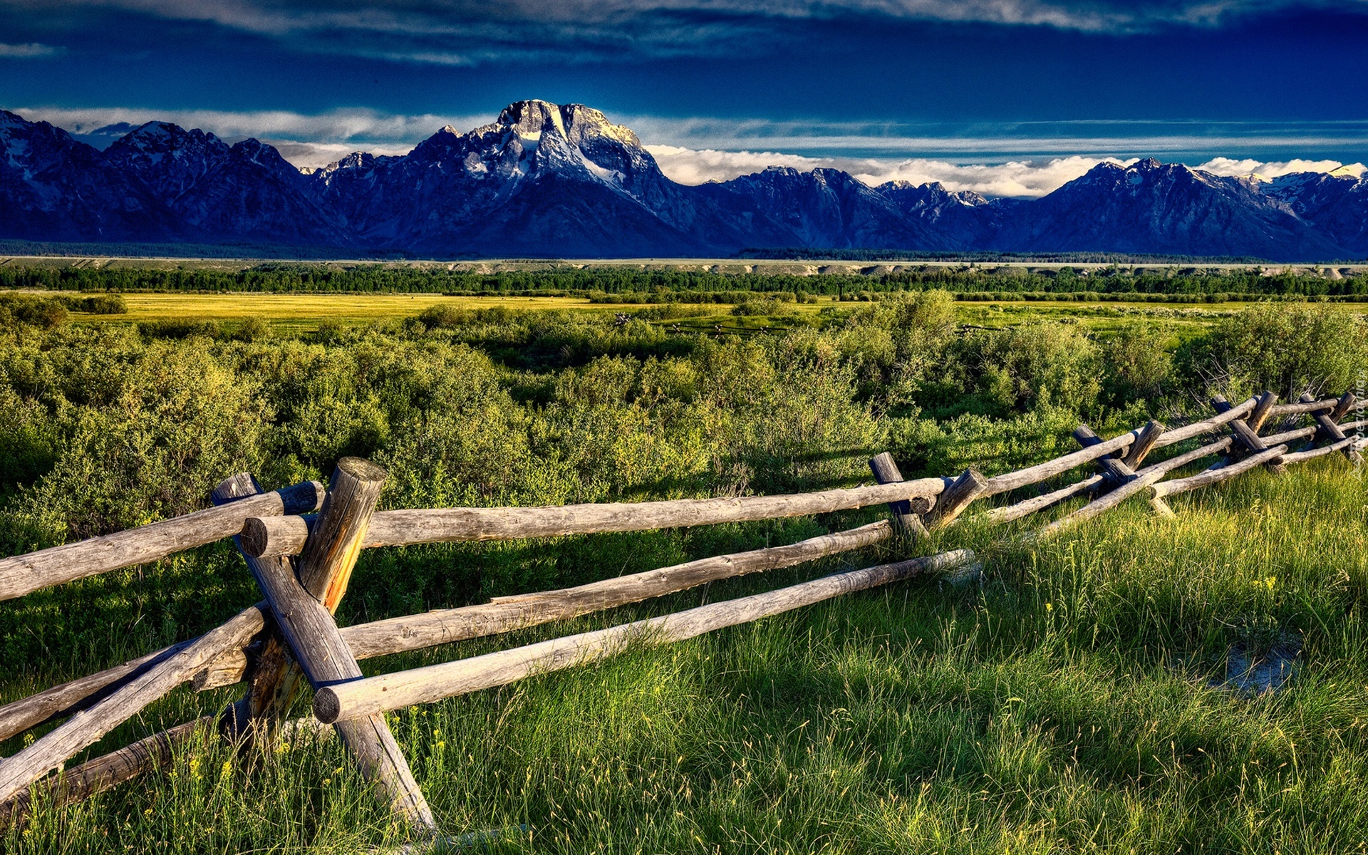 Edytor tapety: Trawy, Krzewy, Ogrodzenie, Góry