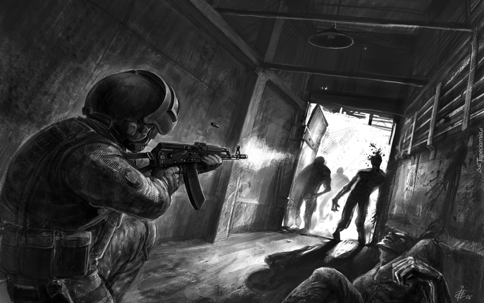 Edytor tapety: Żołnierz, Karabin, Noc, Żywych, Trupów