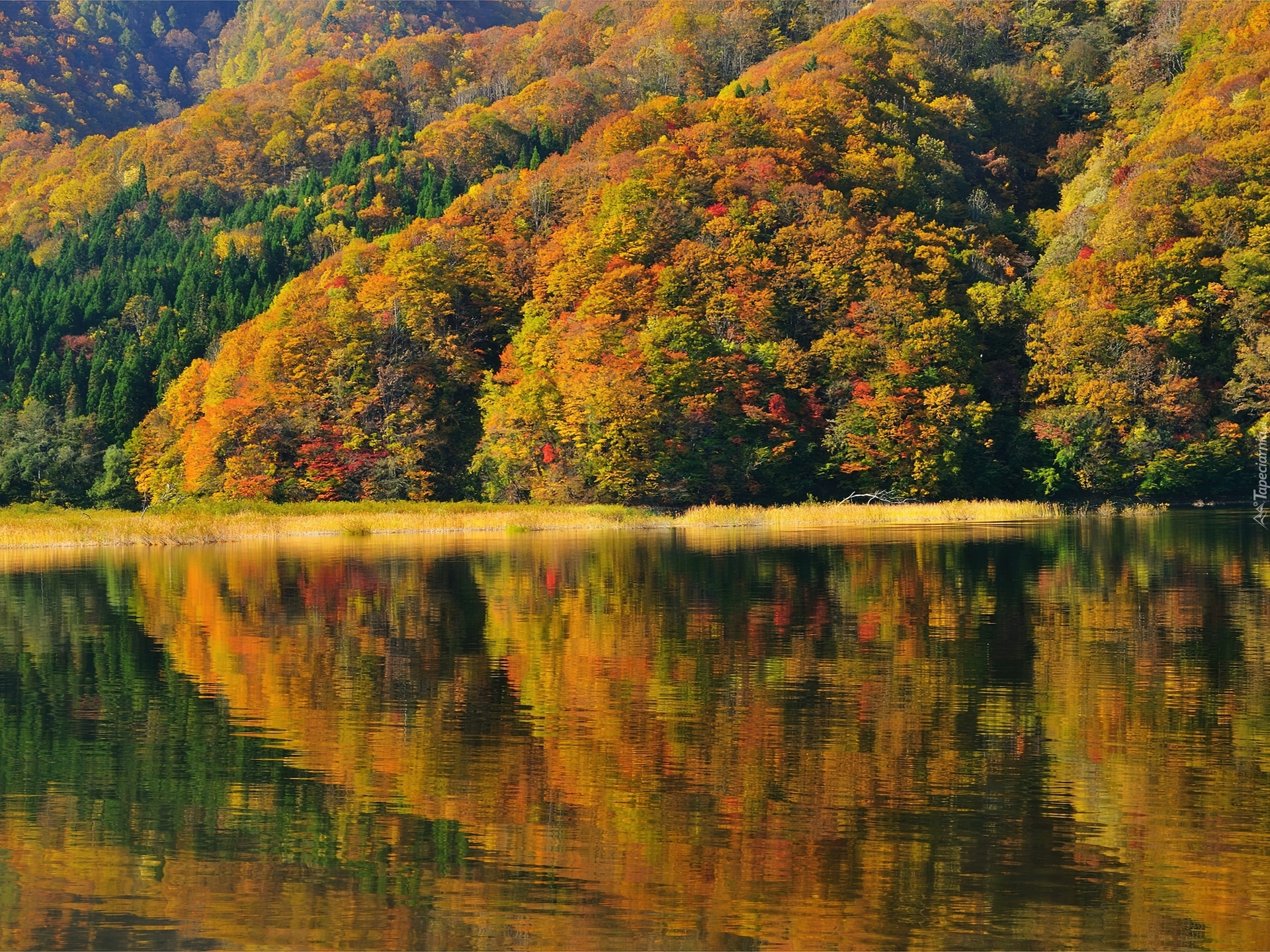 Edytor tapety: Jesień, Las, Woda, Kolorowe, Liście
