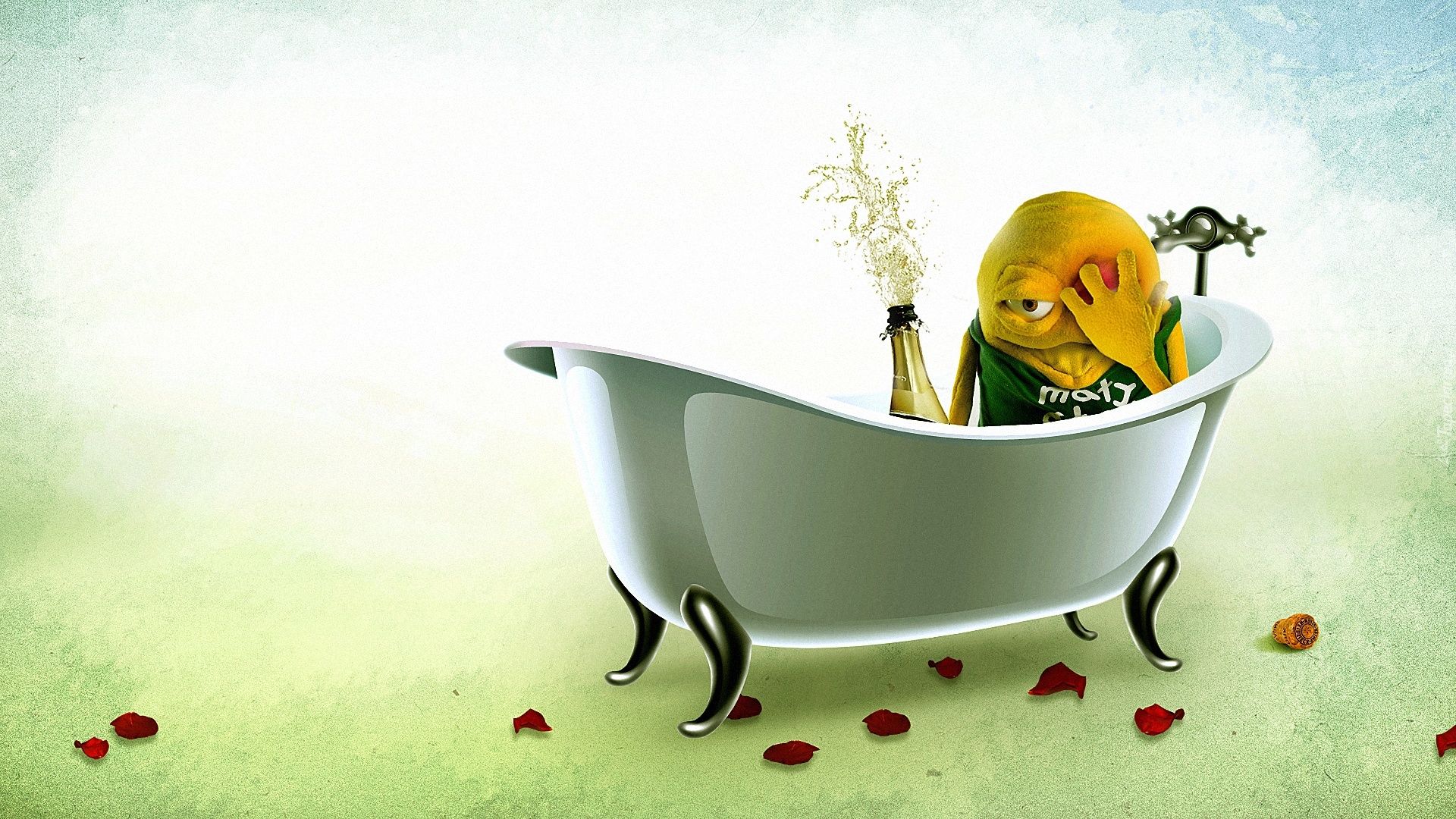 Edytor tapety: Maskotka, Mały, Głód, Wanna, Szampan