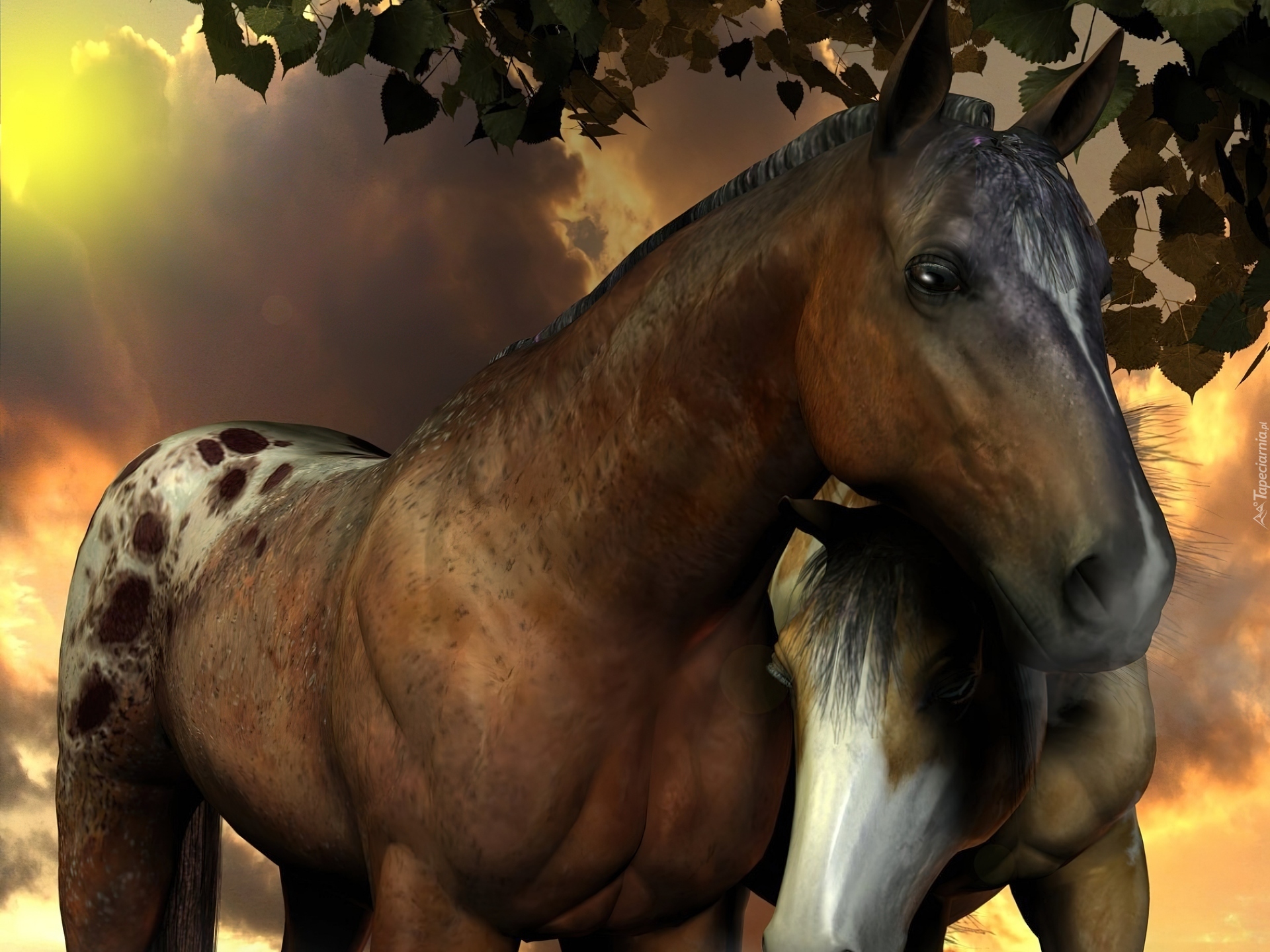 Edytor tapety: Dwa, Konie, Art