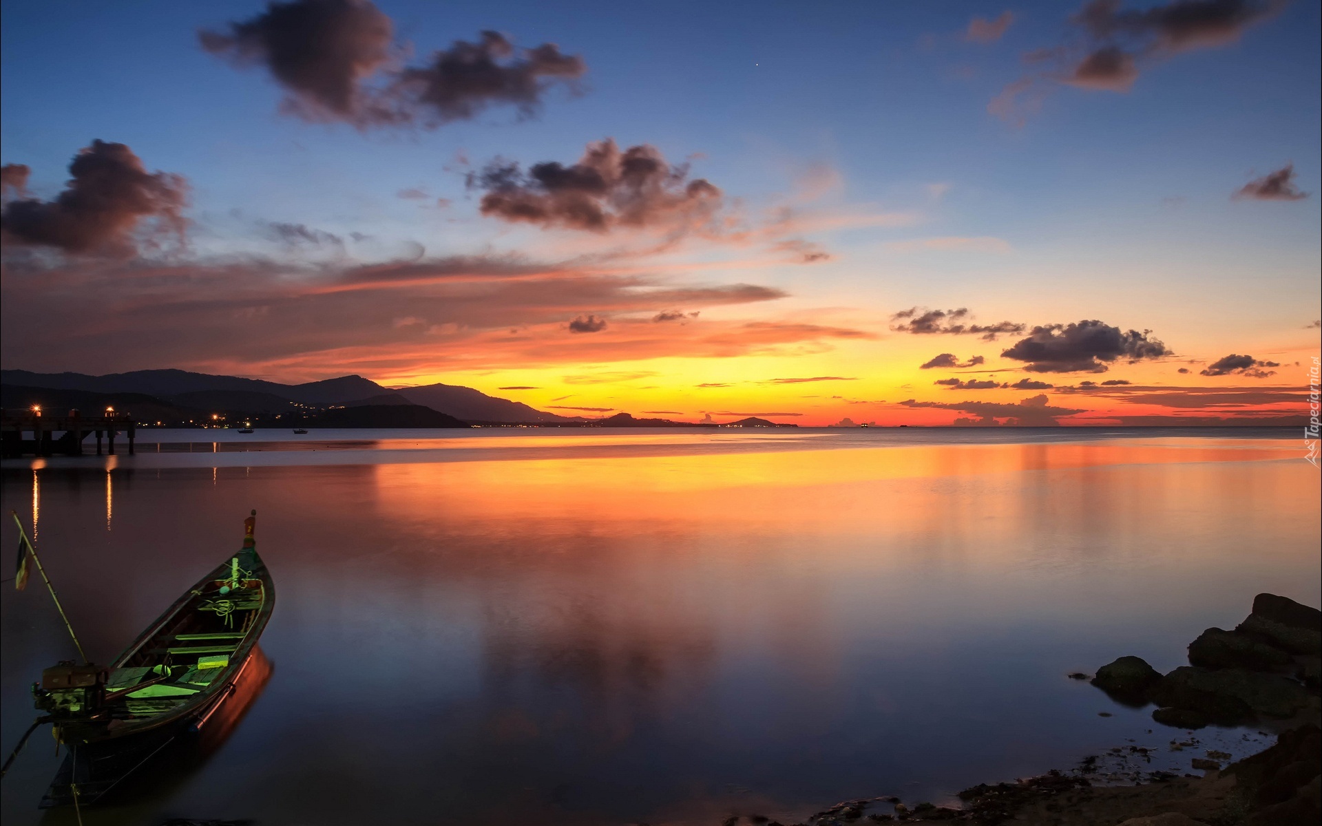 Edytor tapety: Jezioro, Łódka, Zachód, Słońca